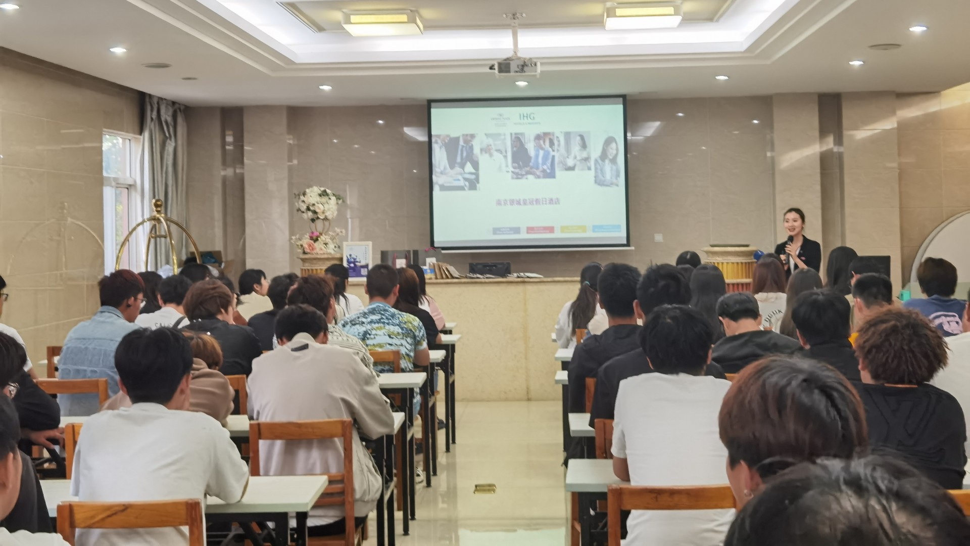 苏宁钟山国际高尔夫酒店、南京长江之舟华邑酒店集团、南京银城皇冠假日酒店依次开展了校企合作班宣讲工作,通过现场企业情况介绍、校企合作班“学长说”、互动答疑等环节,就校企合作班各类经费、各项活动及同学们普遍关心的问题进行了宣讲。