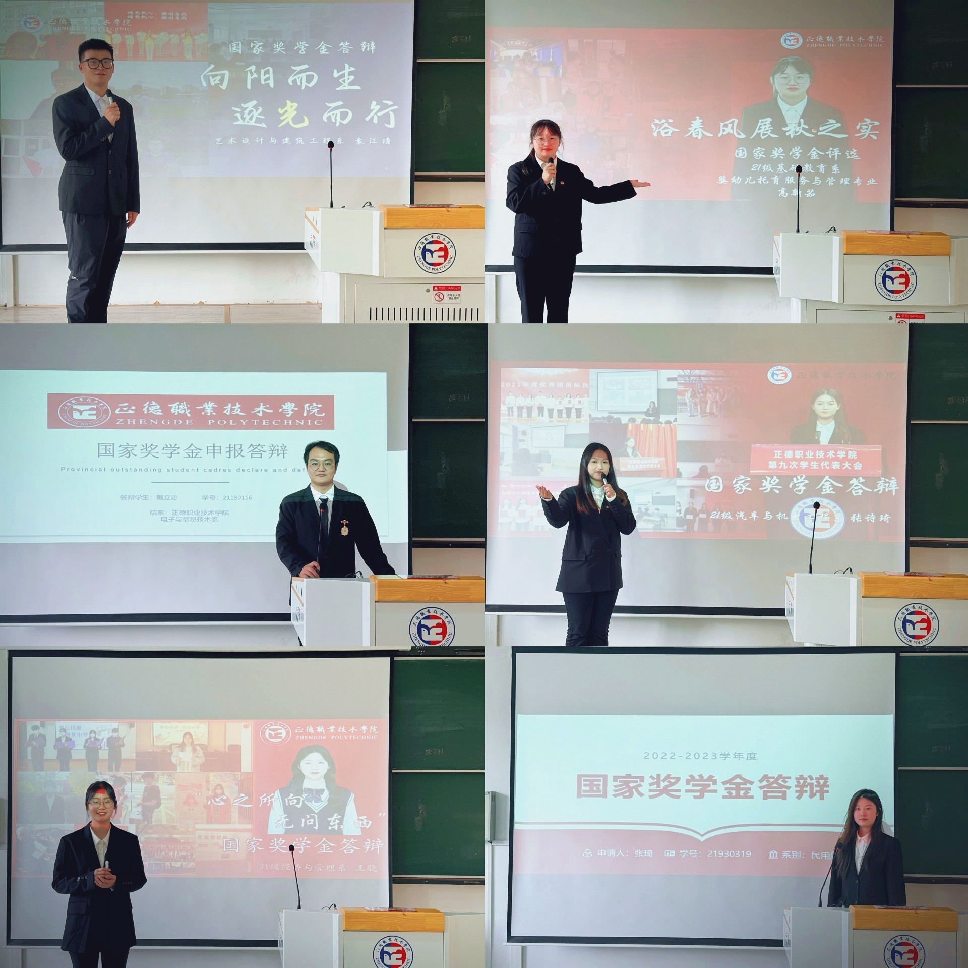 经个人申报、各系推荐、学院审核,共有六名候选人入围院级答辩。答辩环节中,候选人主要围绕个人思想情况、学习成绩、科技创新、社会实践、文体竞赛、榜样示范等方面进行答辩展示,展示了自己的成长与收获,彰显了新时代正德学子刻苦努力、勤学奋进、勇于担当的良好风貌。答辩会中,各候选人充分展示了专业成长、志愿活动、社会实践、学科竞赛、思想政治等方面的成绩。同时在答辩过程中,他们也向所有人充分展示了自身良好的语言表达能力和缜密的逻辑思维能力。