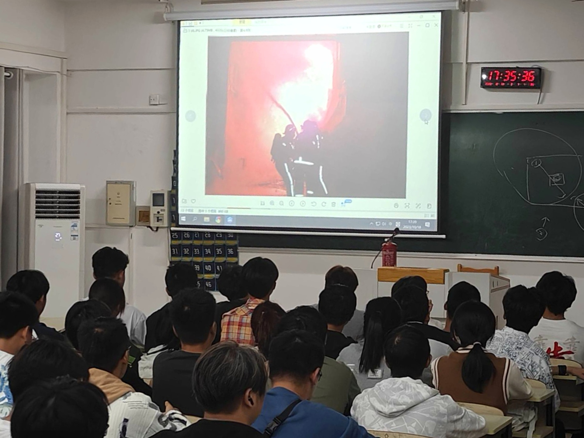 针对同学们防火意识较为薄弱的情况,付磊结合校园火灾案例讲解了日常生活中火灾预防、火场逃生、初起火灾扑救、火灾报警等相关知识以及灭火器材的使用方法和注意事项。在集体观看消防警示教育片以及火场一线图片资料的过程中,学生们认识到火灾隐患的无处不在与火灾事故带来的严重危害,深刻感受到学习消防安全知识,预防火灾的重要性。