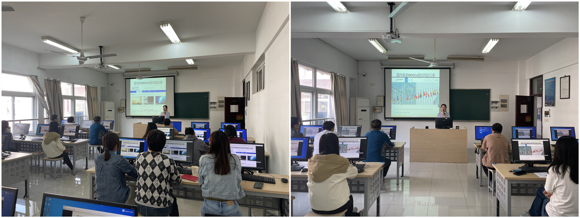 专任教师陈锦锦参加的国培项目是“在线课程平台设计与实施”,分享会上,陈锦锦老师介绍了慕课的发展历程、国内外在线课程的区别、典型案例(电路和电子、python交互编程入门1)及在线课程建设的必备条件等,具有较强的实用性,为后续教师在线课程开发具有一定的指导作用。