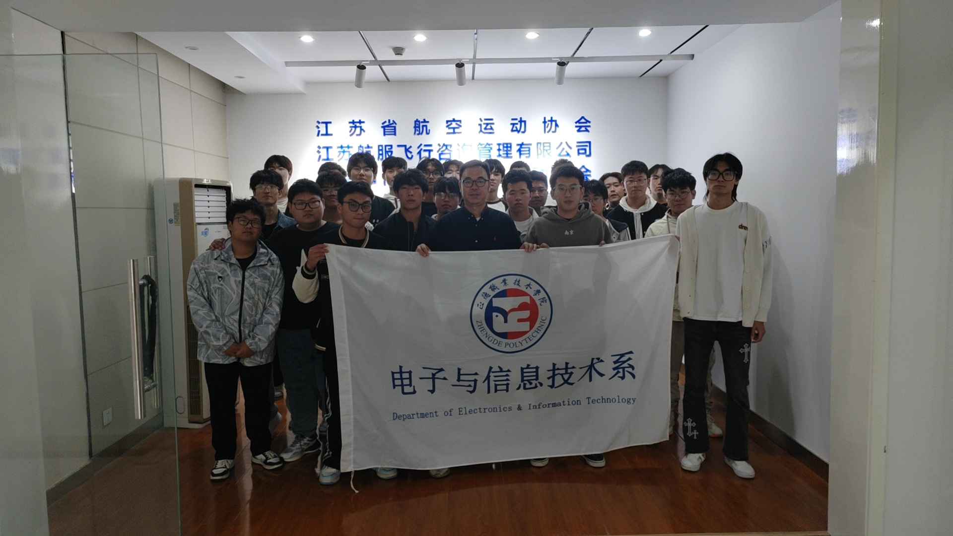 10月26日下午,电子与信息技术系组织专任教师徐宏庆、孙军辉,辅导员付磊带领无人机应用技术专业2023级学生赴江苏航服飞行咨询管理有限公司开展岗位认知活动。