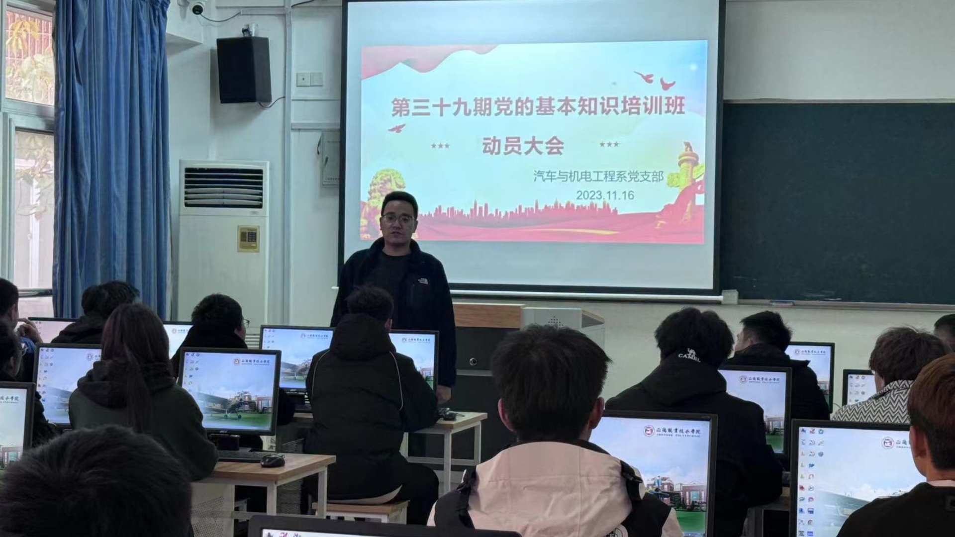 2023年11月16日下午14点,汽车与机电工程系党支部在7205教室召开了第39期党课培训动员大会。汽车与机电工程系党支部书记朱翔出席会议,全体学员参会。会议由汽车与机电工程系组织委员杨慧艳老师主持。