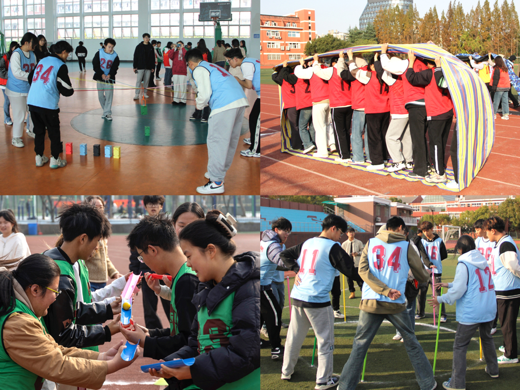 活动设有管道传球、同心鼓、合力筑塔、无敌风火轮、不倒森林五个赛项。比赛中,同学们精神饱满、奋力争先,配合默契,始终秉承“友谊第一,比赛第二”的精神,整个比赛的氛围愉快而又紧张。队员们奋力拼搏的精神带动了全场气氛,周围的观众呐喊声不断,田径场上充满了欢声笑语,洋溢着新时代大学生的蓬勃朝气。