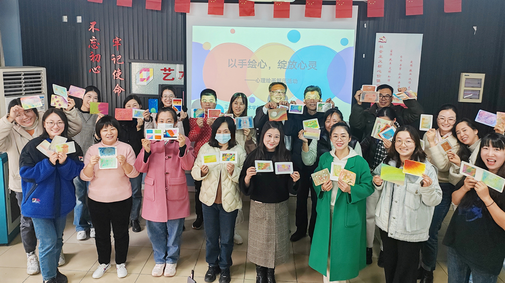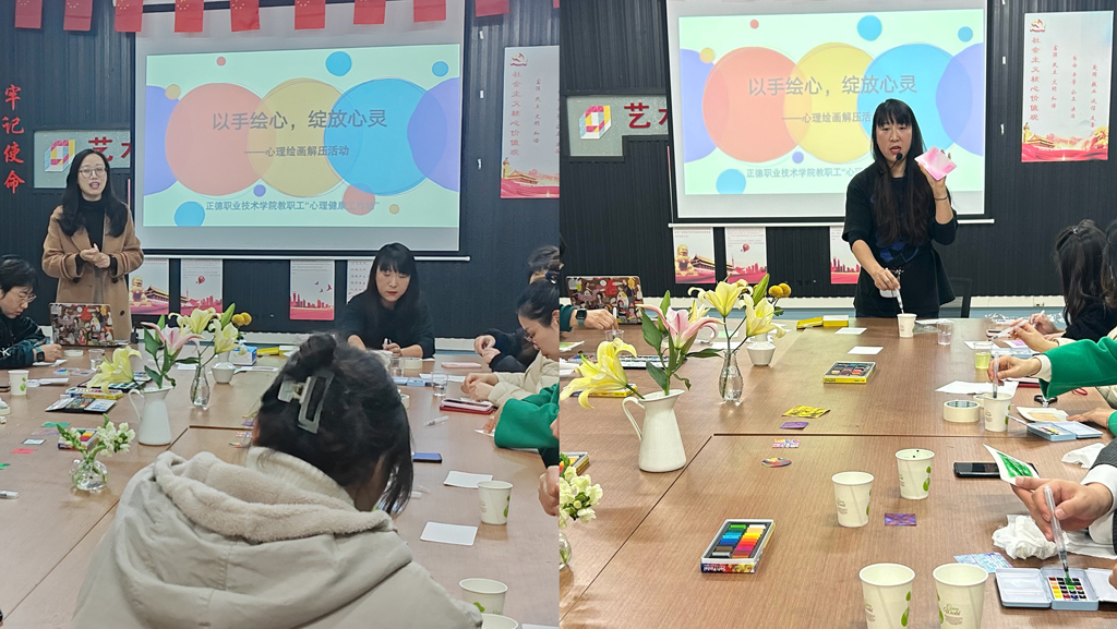 为切实关心关爱户外露出 教职工身心健康,着力提升教职工心理健康素养,缓解教职工的心理压力,增强教职工的获得感、幸福感和安全感。11月29日下午14点,院工会联合学生处大学生心理健康教育中心在8204教室举办 “‘画’解压力,绽放心灵” 心理健康工作坊活动。本次工作坊邀请户外露出 艺术设计与建筑工程系艺术传媒专业组专任教师徐嘉嘉担任指导教师,全院20多位教职工参与了此次活动,活动由学生处大学生心理健康中心傅蕴男主持。