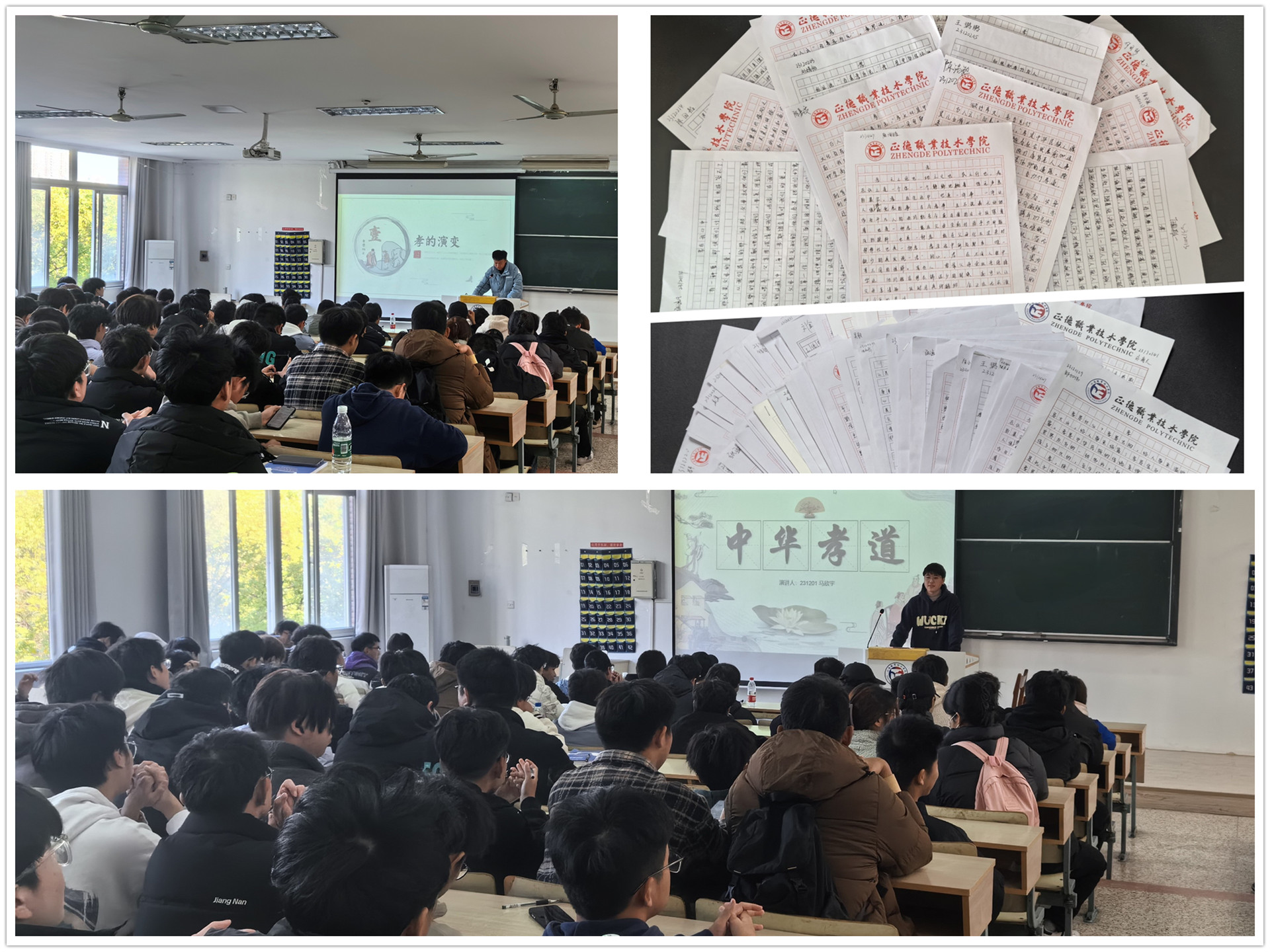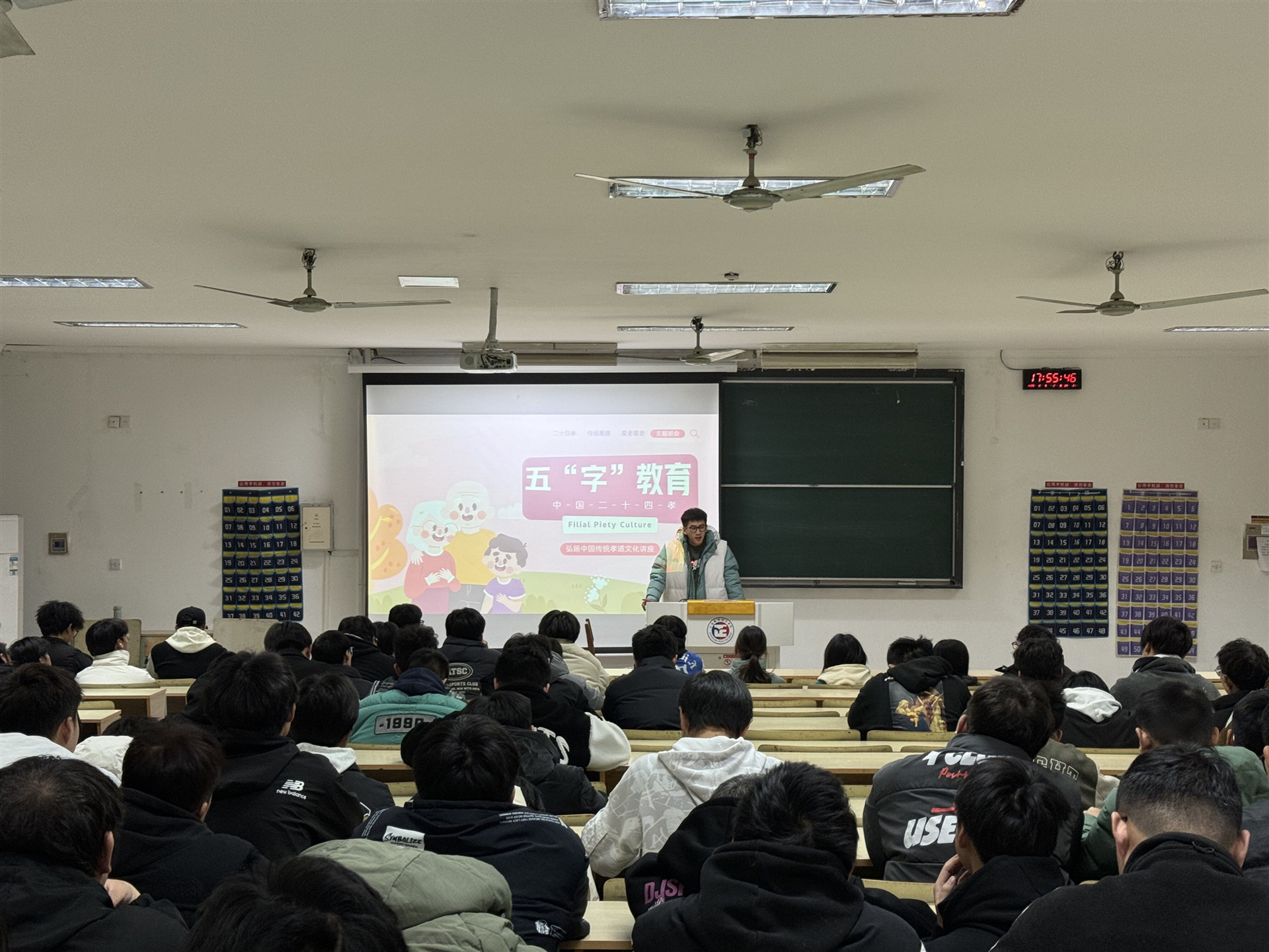 活动现场,辅导员付磊给2023级的同学们带来了一场“五字”教育中关于“孝”文化的讲座。他从历史、文化、社会等多个角度阐述了孝的重要性,讲解了“孝”的内涵和价值。学生们认真聆听,积极互动,对“孝”文化有了更深入的认识和理解。