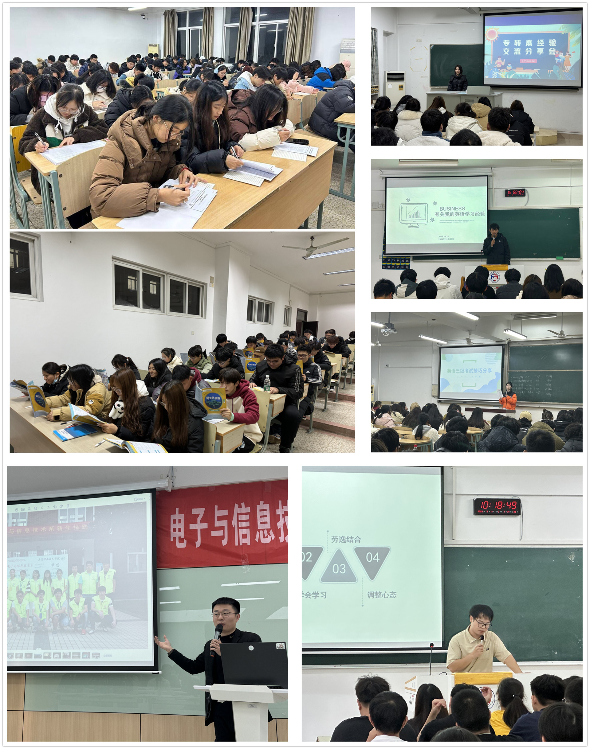 树立优秀典型,以榜样树学风。电子与信息技术系通过邀请“高质量就业典型”陆靖宇、“升学典型”高洪、“转本成功”的乔冬冬等有代表性的优秀毕业生进行经验分享,举办青年榜样分享交流会和新生“开学第一课”等系列活动,有针对性地给学生提供备考学习经验交流,彰显朋辈教育的力量,创造浓厚的学习氛围,充分发挥“传、帮、带”作用,营造“比、学、赶、超”的优良学风。