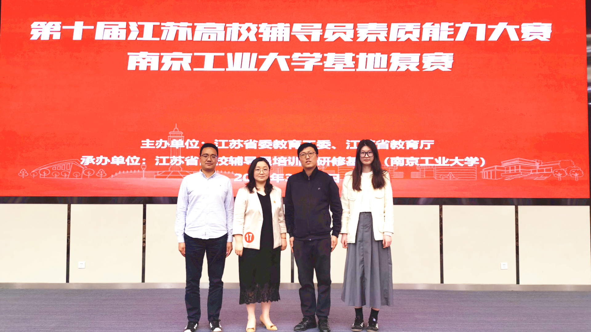 3月29-30日,第十届江苏高校辅导员素质能力大赛南京工业大学基地复赛成功举办。来自南京、泰州地区的17所高校辅导员参加复赛,经过激烈角逐,户外露出 汽车与机电工程系辅导员丁烨荣获优胜奖。