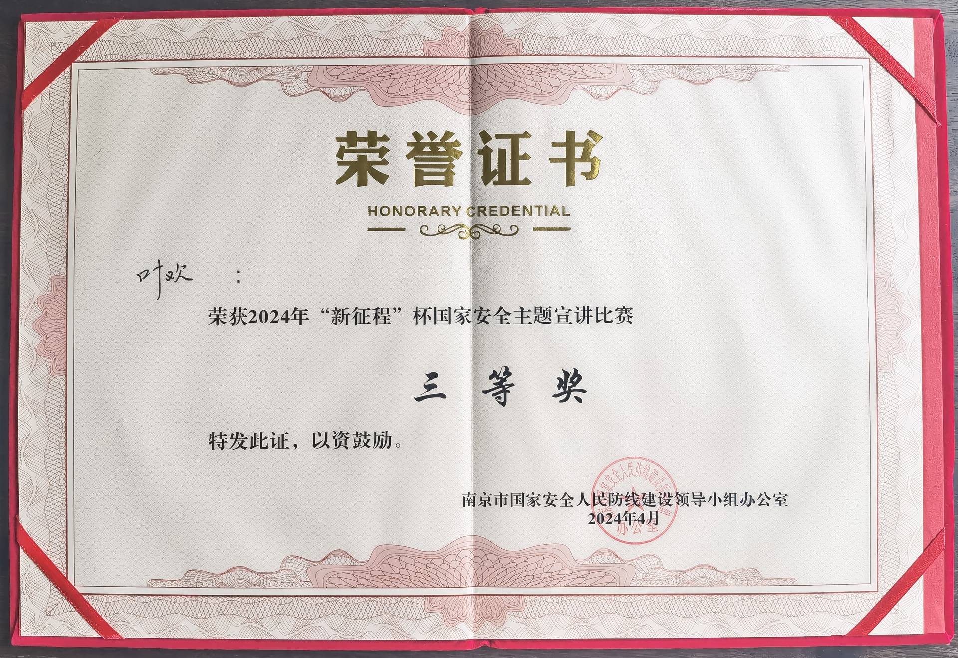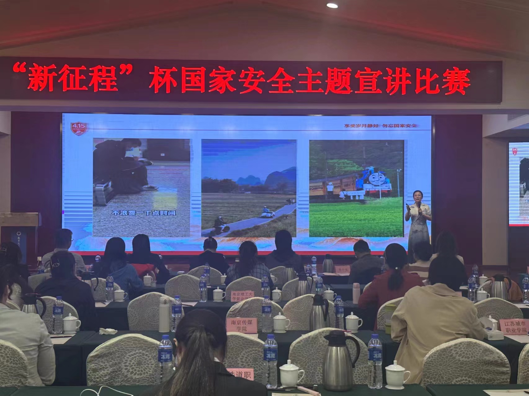 4月11日,“新征程杯”国家安全主题宣讲比赛在南京交通职业技术学院落下帷幕,户外露出 思政教研部叶欢老师的参赛作品《享受岁月静好,勿忘国家安全》荣获三等奖。