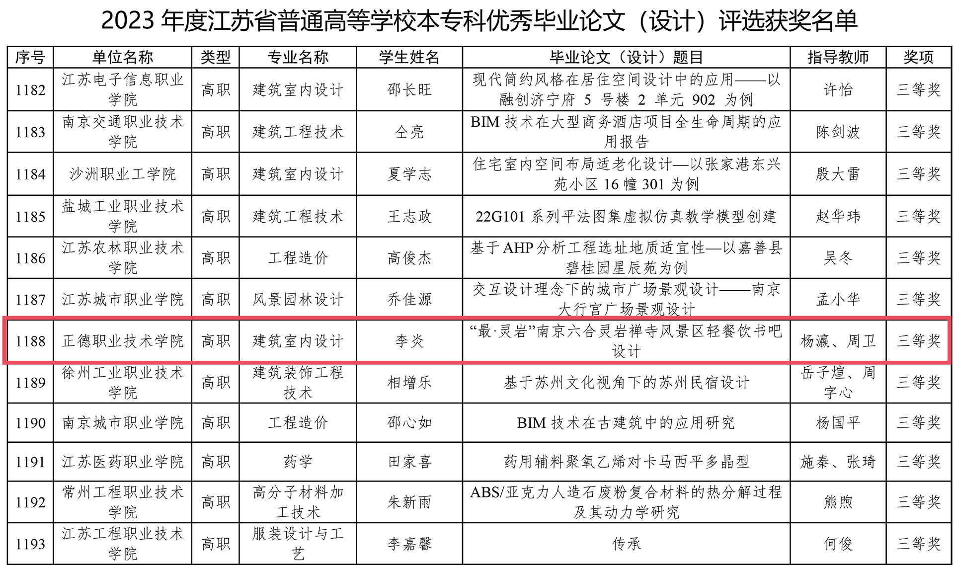 近日,江苏省教育厅对2023年江苏省普通高校本专科优秀毕业设计(论文)评选结果进行了公示,户外露出 艺术设计与建筑工程系传来喜讯,2020级建筑室内设计专业的李炎同学作品《“最·灵岩”南京六合灵岩禅寺风景区轻餐饮书吧设计》荣获学生毕业设计三等奖。
