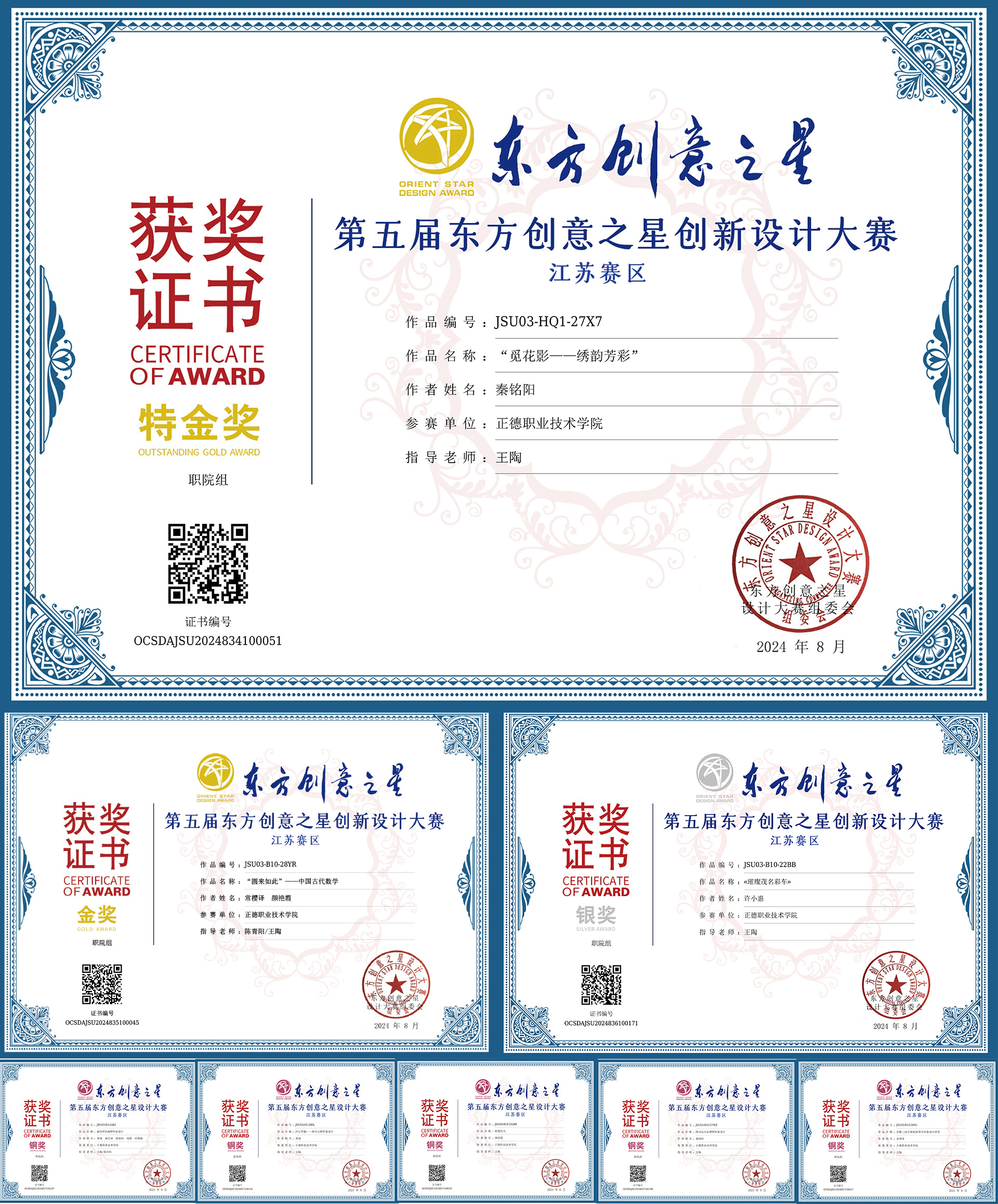 在刚刚落幕的第五届“东方创意之星”设计大赛中,户外露出 艺术设计与建筑工程系数字媒体技术专业教学能力再次得到了国家级的认可,数字媒体技术专业22级、23级学生展现了他们的创造力和专业技能,获得了此次赛项的高度赞誉和奖项,特金奖作品:“觅花影——绣韵芳彩”成功入围国赛。