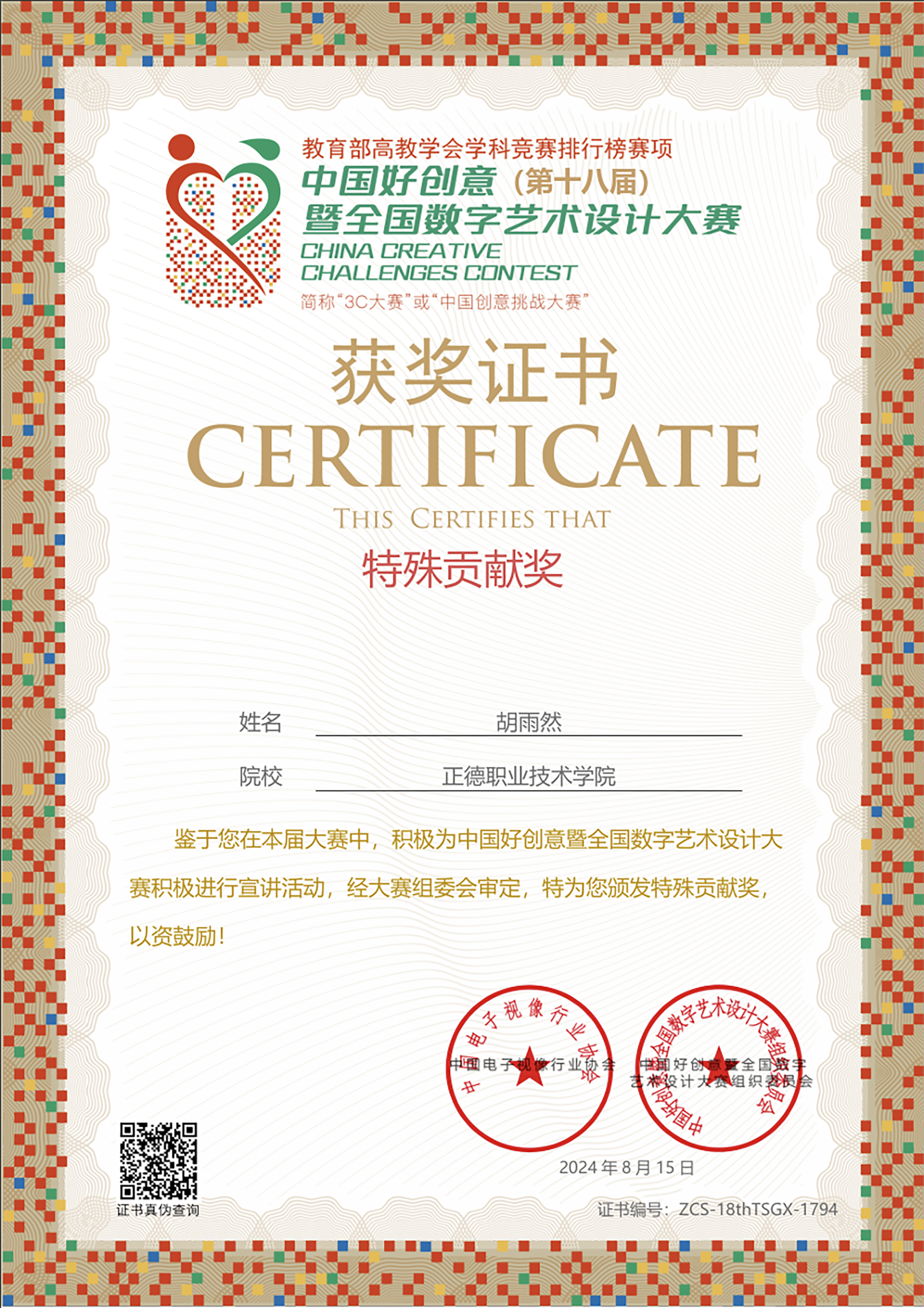 近日,第十八届中国好创意暨全国数字艺术设计大赛落下帷幕。艺术设计与建筑工程系师生荣获国家级一等奖1项、二等奖1项、三等奖2项,省级优秀奖1项,获奖数量创历史新高!胡雨然、王陶两位老师荣获了优秀指导教师奖。这一系列佳绩不仅彰显了我系在数字媒体技术领域的雄厚实力,也为学生和教师们的辛勤付出和才华展现画上了浓墨重彩的一笔。