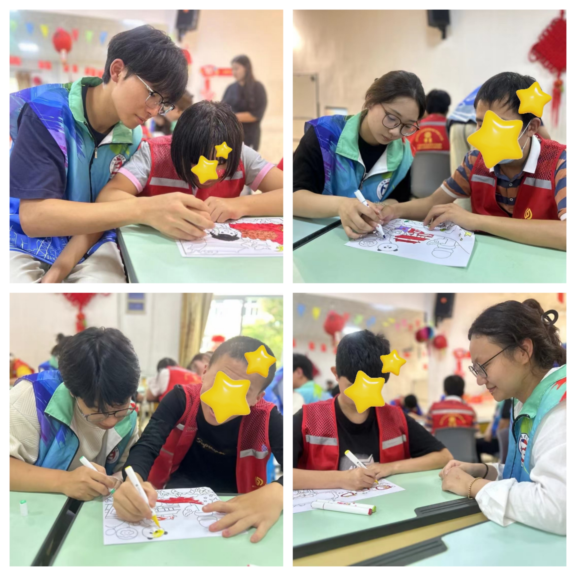 在绘画环节中,汽机系志愿者们和学员们携手创作了一幅幅关于国庆的画作。他们或描绘祖国的壮丽山河,或展现城市的繁华景象,每一笔都蕴含着对祖国的热爱与赞美。这些画作不仅展现了学生与学员们的艺术才华,更凝聚了他们对祖国的深情厚意。不仅体现了青春的活力,更彰显了团结合作的精神。
