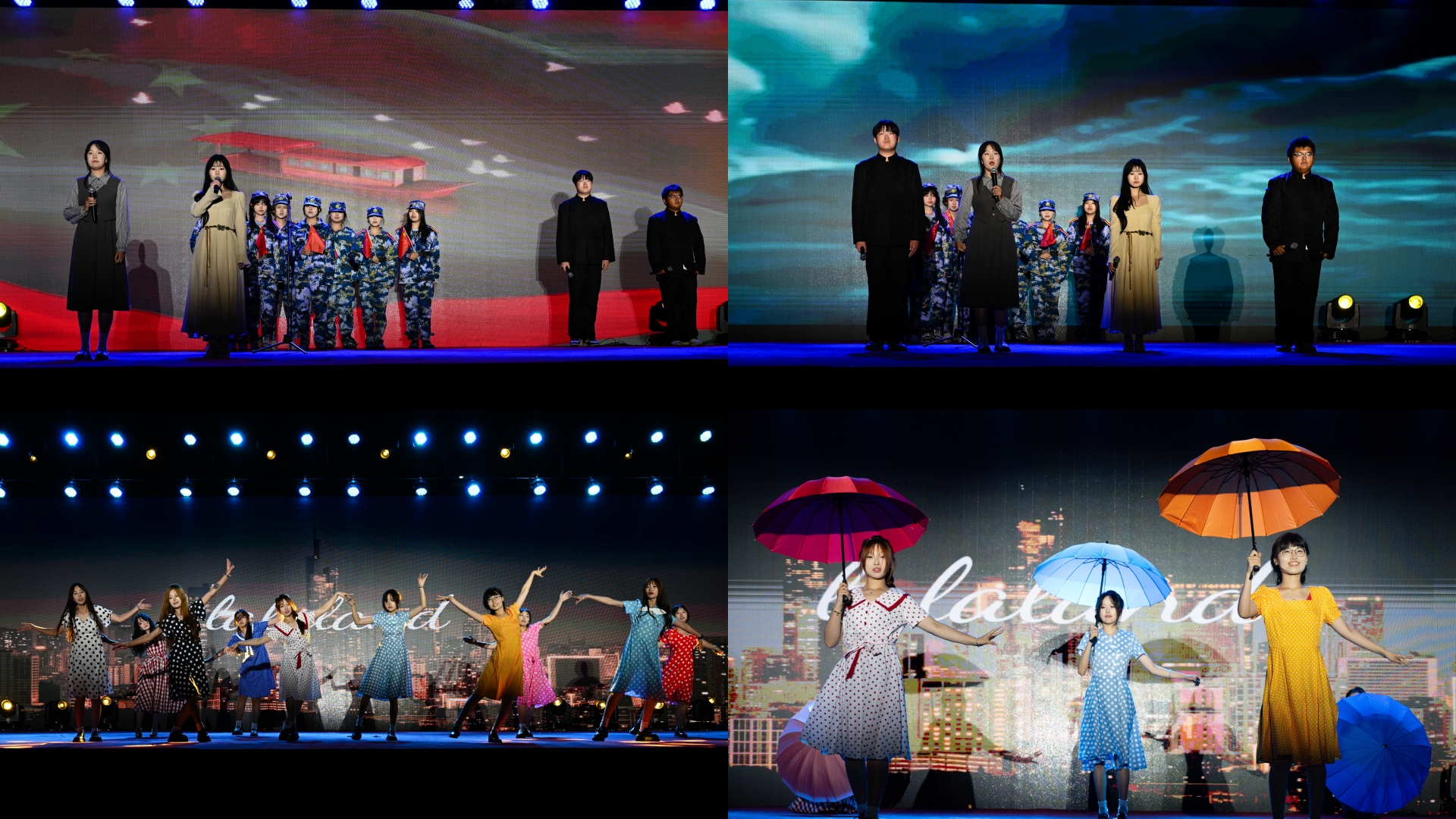“美育”为翼,迎新晚会上,我们以艺术之名,共绘新中国华诞长卷。情景朗诵“薪火相传”,穿越时空的隧道,讲述着国家的辉煌与梦想;歌舞剧“Lalaland”则如同璀璨星辰,照亮了学子们对未来的无限憧憬。这不仅是美的享受,更是心灵的洗礼,让学生在艺术的殿堂里,感受美、创造美、传递美,让美育成为滋养心灵的甘泉。