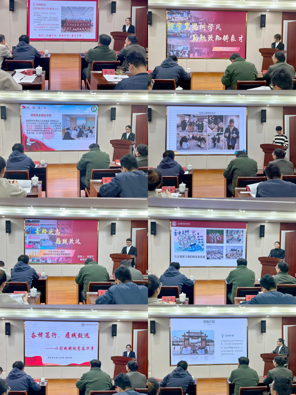 为进一步加强学风建设,优化育人环境,不断提高人才培养质量,鼓励广大学子勤奋学习、顽强拼搏、争当先进,有力促进优良学风形成,服务学生全面发展和成长成才。学院于11月18日下午在5201会议室组织开展2023-2024学年学风建设标兵班级、先进个人评选会。学生处处长祝佳俊、公共教学部主任杨卫东、院团委书记黄晓帆、学生处副处长何华智、各系党支部书记、辅导员代表、参评班级代表和2024级新生代表约50人参加。