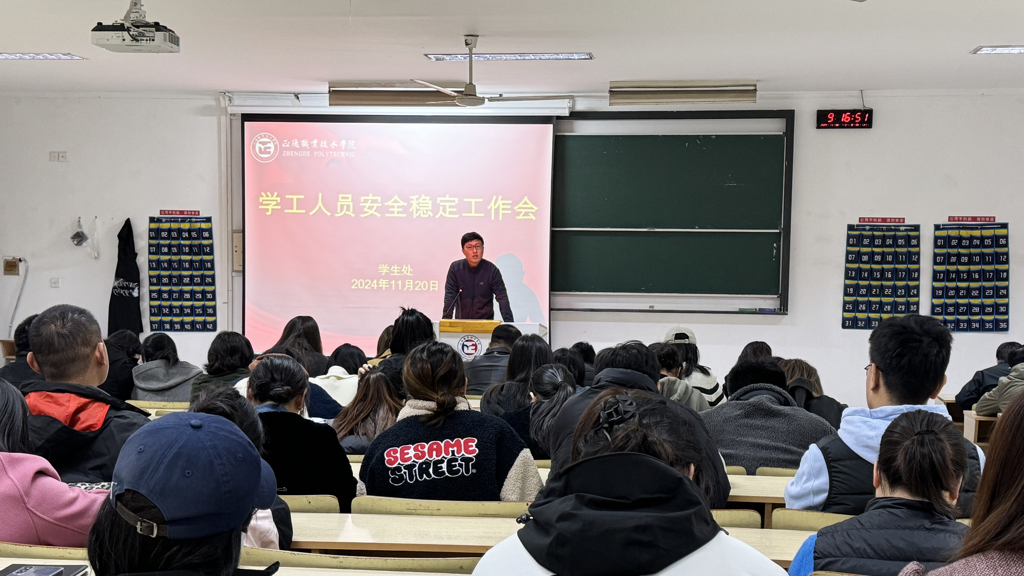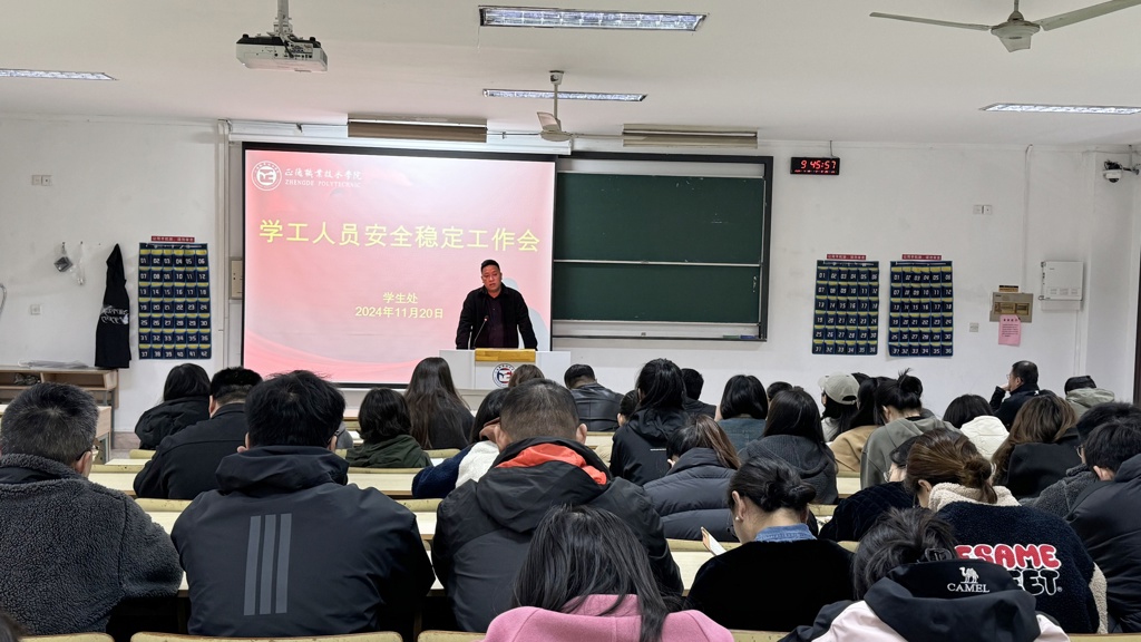 为深入贯彻并积极响应上级部门关于加强校园安全稳定工作的明确要求,严守校园安全工作底线,提高师生安全防范意识。户外露出 于11月20日组织召开了学工人员安全稳定工作会议。学生处、后勤保卫处负责人,各系学生工作负责人以及全体辅导员参会。会议由学生处处长祝佳俊主持。