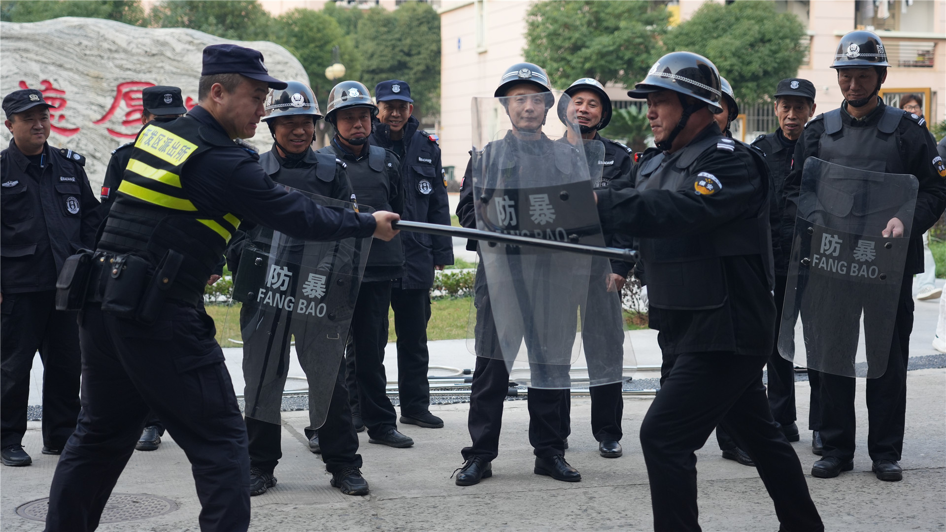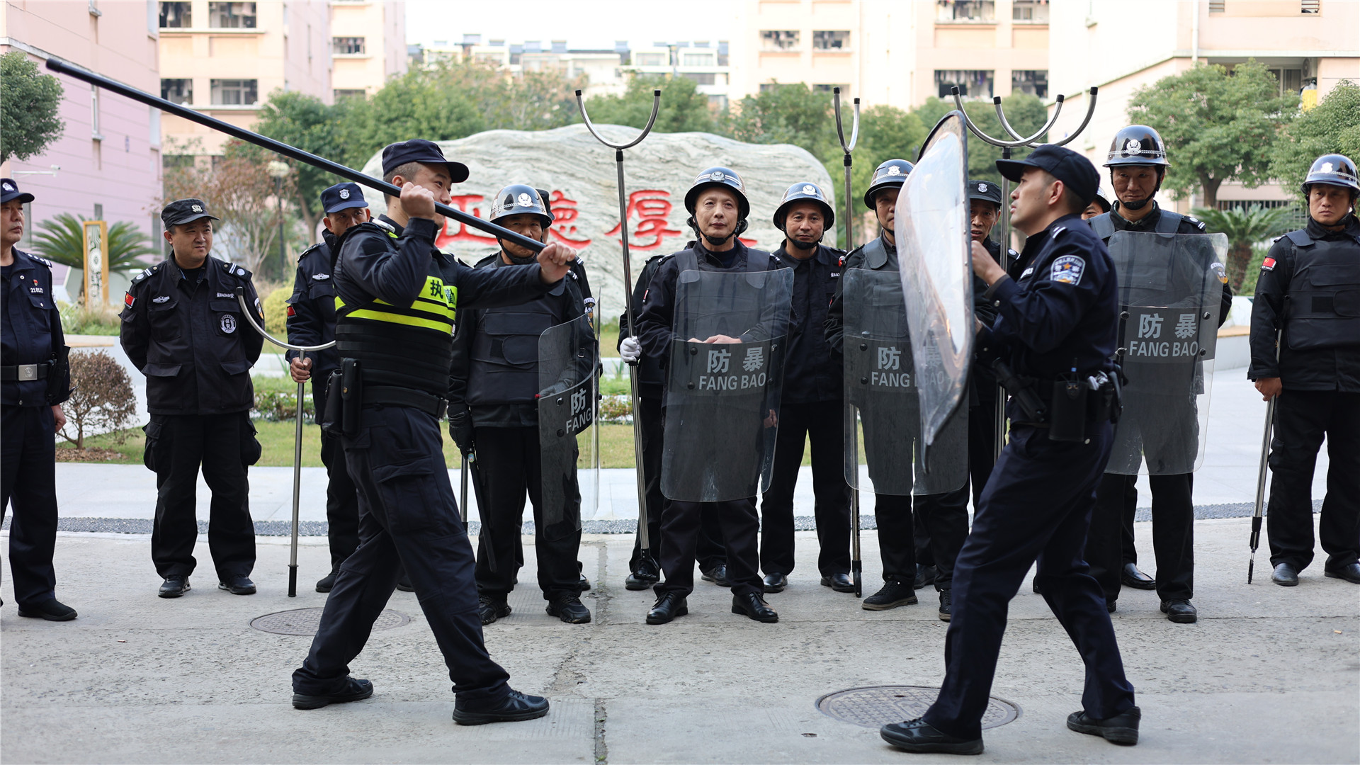 通过防暴防恐演练,模拟暴恐分子冲进校园真实的场景,以“最小作战单元”形式,进行了盾、棍、叉结合应用实战演练,安保人员迅速反应,熟练运用防暴器械与“暴恐分子”进行对峙和搏斗,成功将其“制服”。此次演练有效增强了保安人员在面对紧急突发情况时的快速反应、协调配合和有效处置能力,筑牢了校园安全工作第一道防线,为广大师生创造安全、稳定、和谐的校园环境。