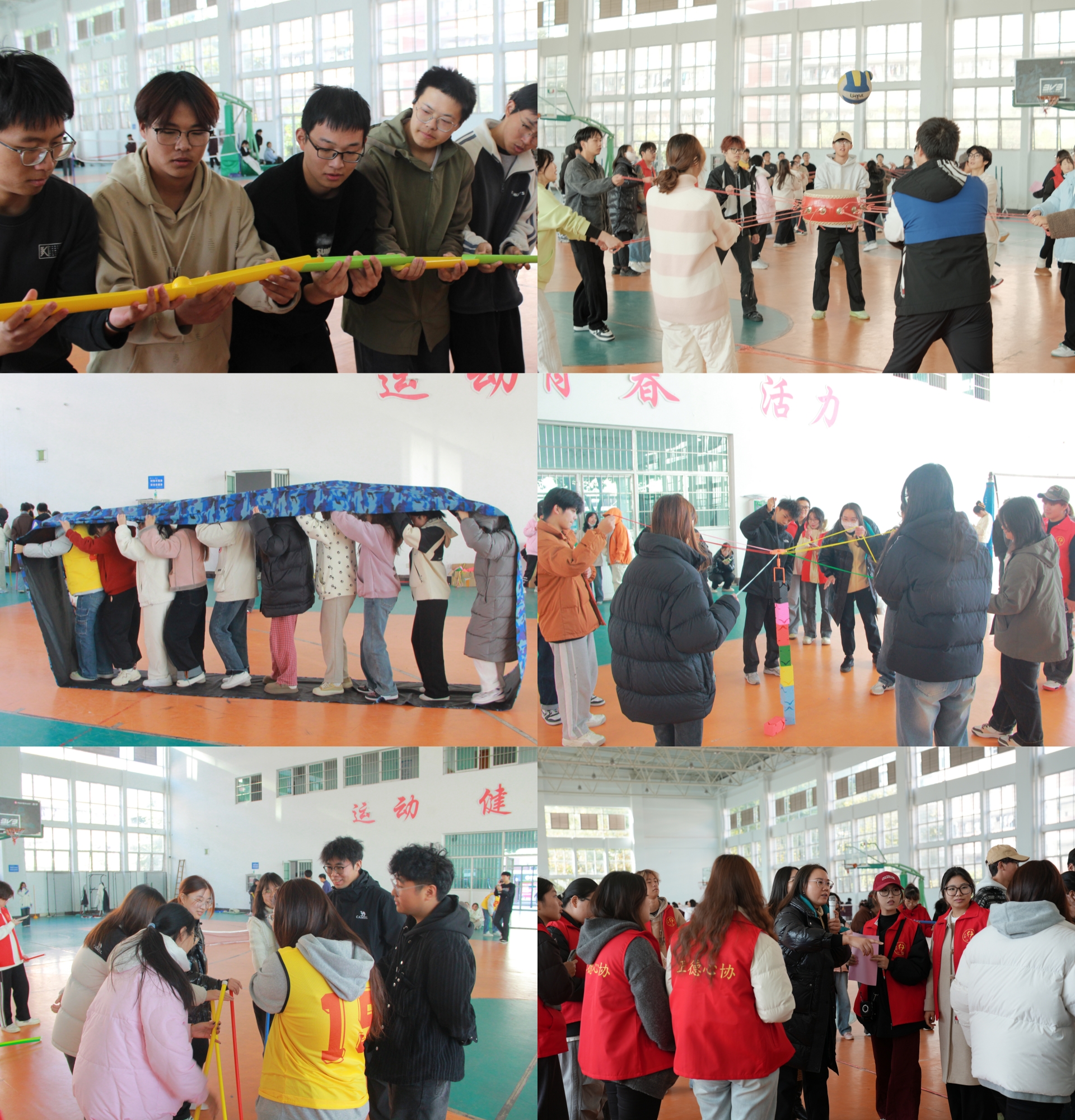 为践行“以体强心”的教育理念,着力引导学生体悟生命坚韧之力,强化团结合作意识,塑造积极乐观、豁达包容的心理素养,营造充满自尊自信、理性平和且积极向上气息的校园环境。11月28日下午13时,由学生处大学生心理健康教育中心主办的“五育润心,沐光同行”大学生心理趣味运动会在学院运动馆正式启幕,来自六个系的学生代表队以及心理协会成员共计132人参加了比赛。