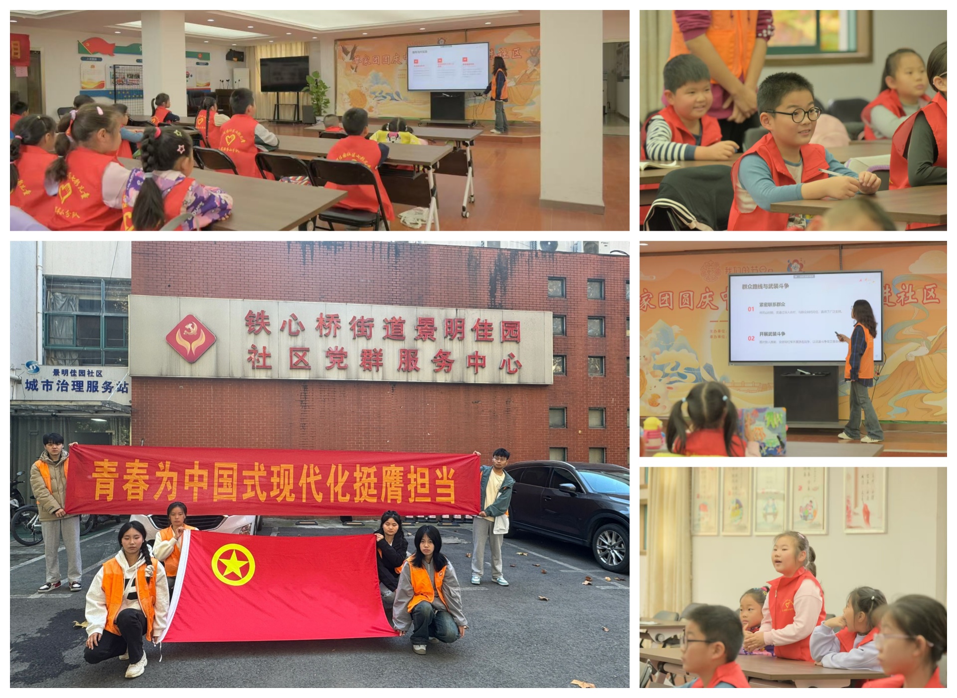 秉持“传承红色基因,赋能青春社区”的理念,艺建系青年志愿者团队走进了铁心桥街道景明佳园社区,担任“红色宣讲员”。通过精心制作的PPT和绘声绘色的讲述,将“井冈山精神”的深刻内涵传递给社区的小朋友们。宣讲过程中,孩子们瞪大眼睛,充满好奇与崇敬之情,还通过手工绘制红军军旗等趣味活动,让井冈山精神在孩子们心中生根发芽,也展现了青年学子践行社会责任、传承红色文化的坚定担当。