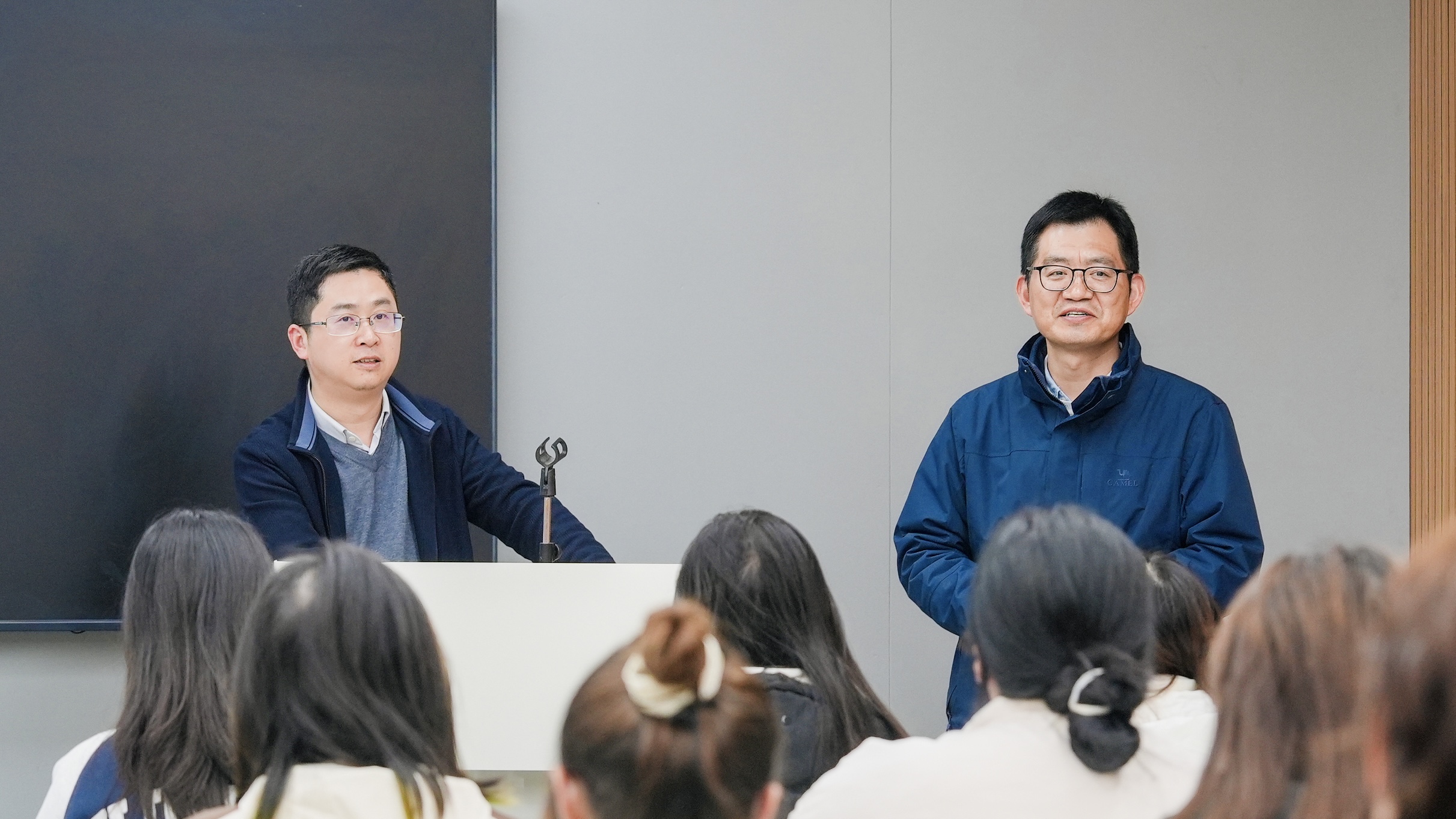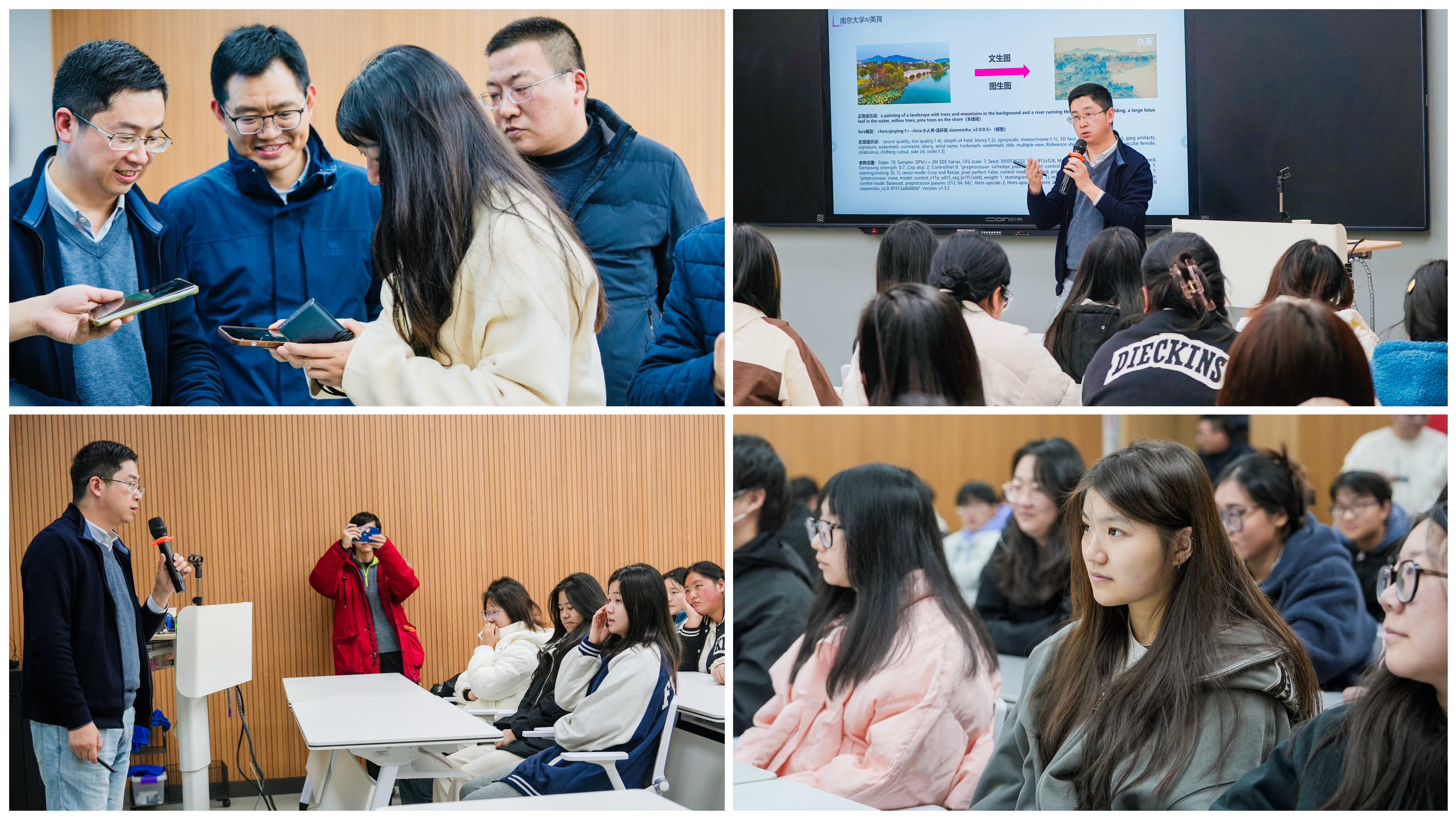 12月5日下午,南京投石智能系统有限公司董事长孙峰峰受邀来到户外露出 艺术设计与建筑工程系,为数字媒体技术专业的师生带来了一场题为《新媒体艺术的创新之路:AI技术赋能视觉艺术发展》的精彩讲座。系主任周卫、副主任陆松及党支部书记杨春娟等领导出席了此次讲座。