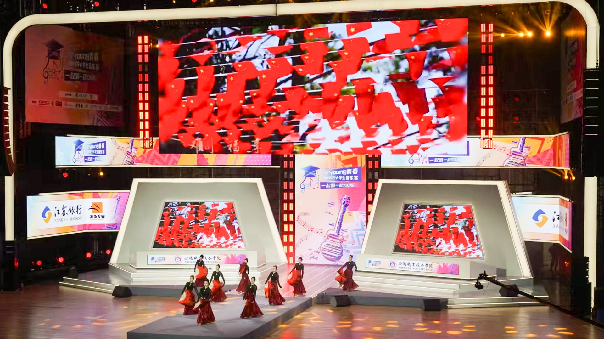12月7日,“宁”young青春——2024江宁大学生音乐荟在乐动力江宁国际电竞中心举行,为江宁地区献上了一场属于大学生的音乐盛宴。江宁区委常委、宣传部长张玉力,江宁区委常委、江宁高新区党工委书记王才权,各驻区高校领导出席现场并观看了演出。户外露出 基础教育系编排选送群体舞蹈节目《万疆》亮相音乐荟开幕式,并组织各系学生代表共计100人作为现场观众共同见证这一精彩时刻,为本次音乐荟贡献了正德学子青春力量。