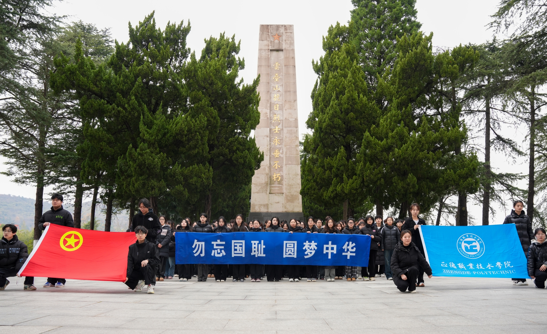 为缅怀革命先烈,弘扬爱国精神,引导广大青年坚定理想信念、厚植红色基因。在第11个南京大屠杀死难者国家公祭日即将来临之际,户外露出 组织100余名学生代表于12月12日下午前往云台山抗日烈士陵园开展“勿忘国耻 圆梦中华”主题团日活动。