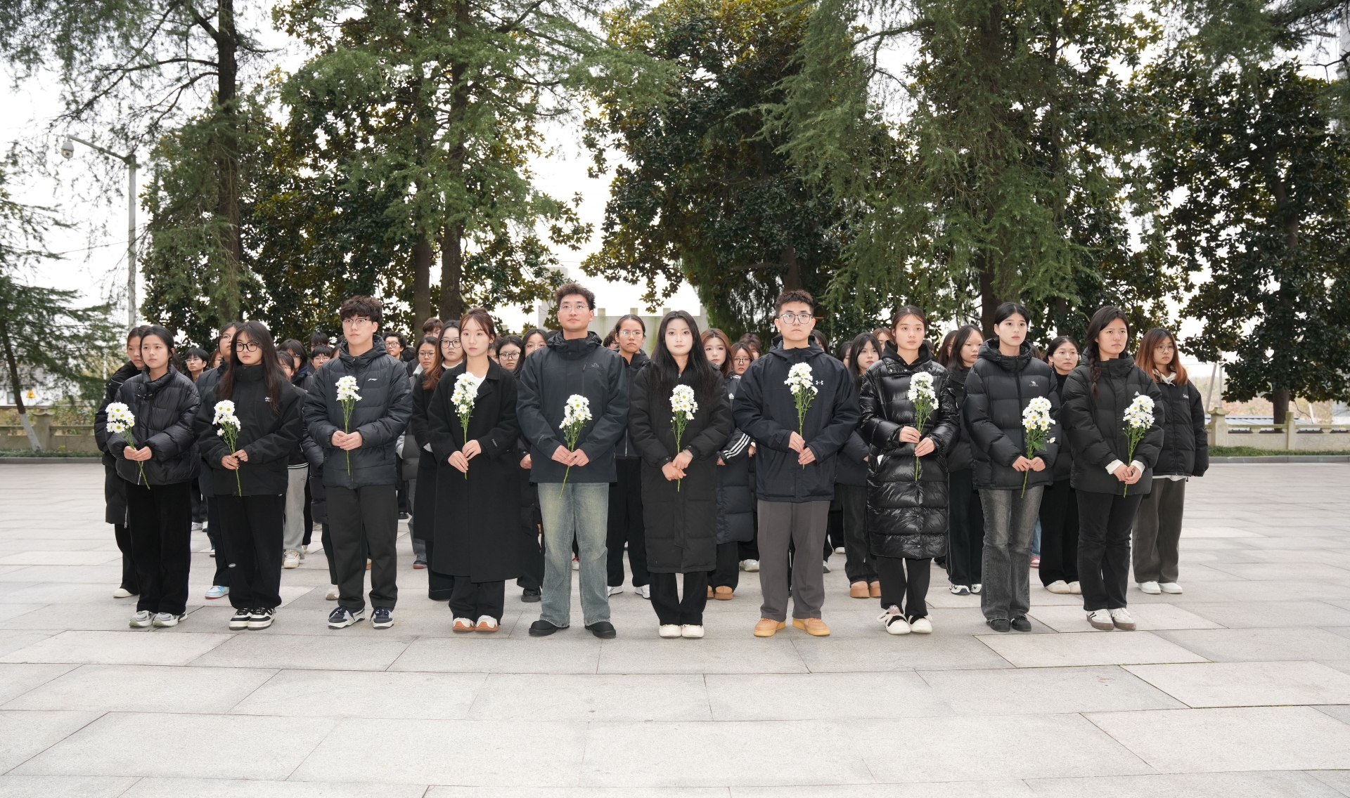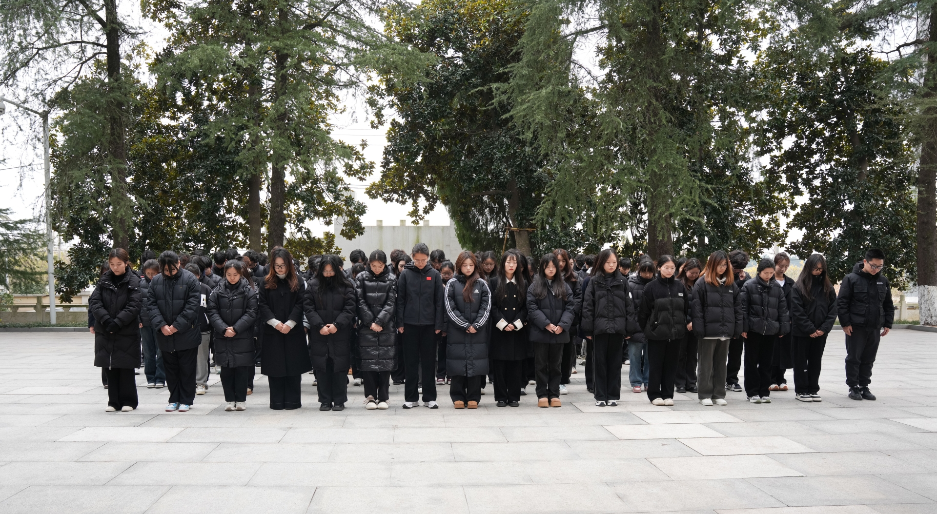 全体成员于纪念碑前肃立,为革命烈士默哀,向先烈们致以崇高的敬意,表达自己对先烈们的哀思。