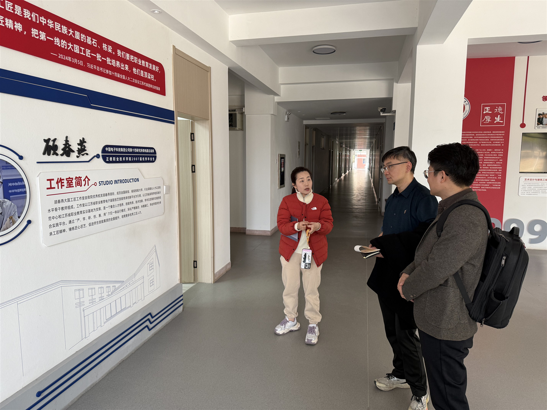 会后,埃斯顿酷卓团队在刘佳的陪同下参观了大国工匠工作室,进一步了解了学院在实训设备和实践教学方面的先进布局。