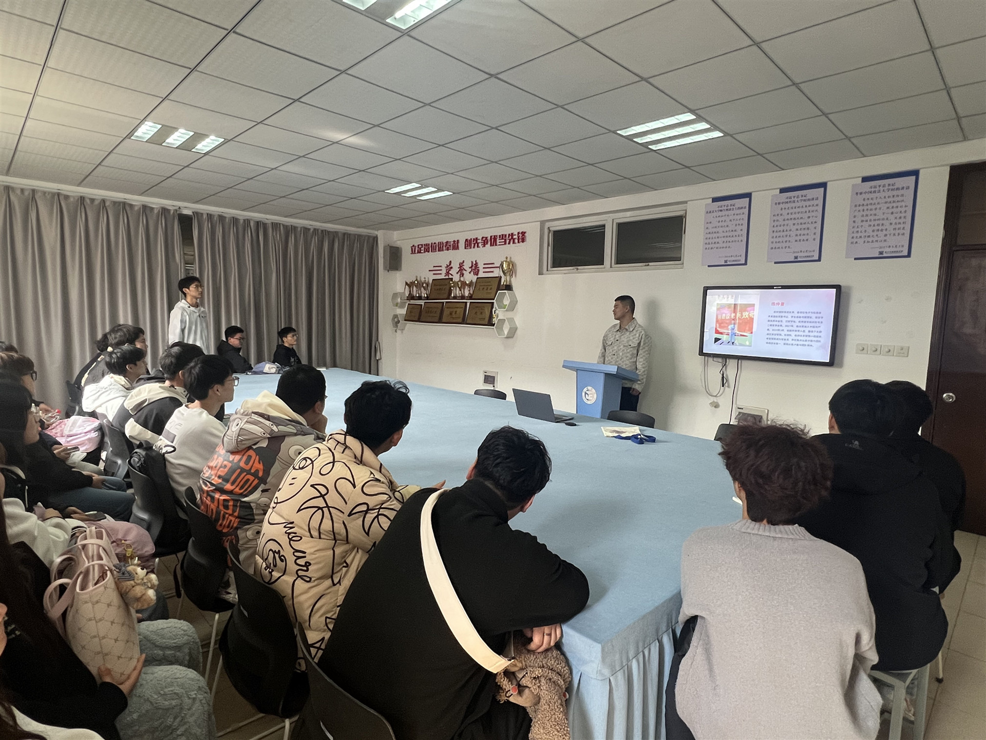 交流会上,刘敏婧从资助对象、内容、标准到方式,逐一介绍了关于退役士兵的资助政策,帮助同学们全面了解服兵役资助的相关信息。随后,陈仲夏围绕自身在部队服役的经历,向同学们分享了他的成长历程与宝贵收获。“从初次体验打靶的紧张,到首次参与驻训的历练,部队里的每一个瞬间都深深烙印在我的记忆中,这不仅锤炼了我的意志,更为我未来的人生道路铺垫了勇气与坚韧,让我敢于面对一切挑战。”陈仲夏感慨道,“短短两年间,我的足迹遍布辽宁大连、辽宁丹东、吉林梅河口等地,历经风沙侵袭、大雪覆盖,体验过野外露营,也穿越过半人高的杂草丛。这些丰富多彩的经历不仅拓宽了我的视野,更重要的是塑造了我面对困难不退缩、勇往直前的品格。”在分享中,陈仲夏流露出对那段军旅岁月的怀念与珍视。
