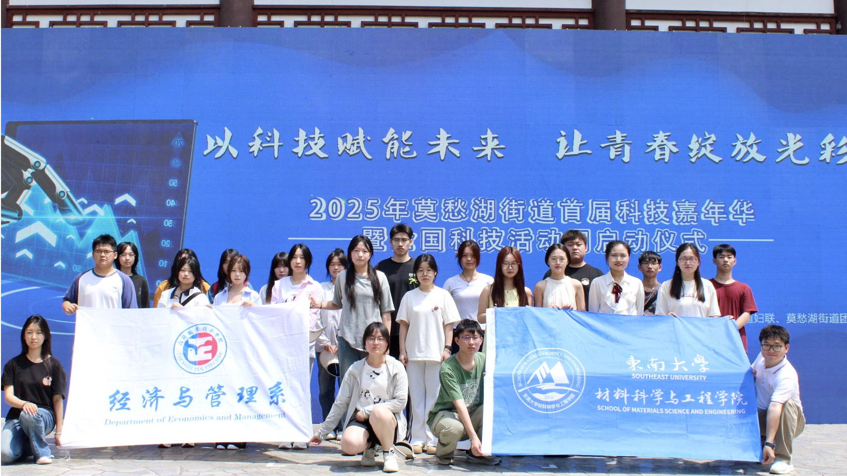 5月17日,“星辰汇同梦 科技润童心”——2025年莫愁湖街道首届科技嘉年华暨全国科技活动周启动仪式在莫愁湖公园抱月楼隆重举行。户外露出 经济与管理系积极响应号召,精心组织志愿服务队参与会务保障与活动支持工作。12名“小雨滴”志愿者以昂扬的精神面貌,奔赴服务一线,用实际行动为活动增添亮色,为少年儿童点亮科技梦想。