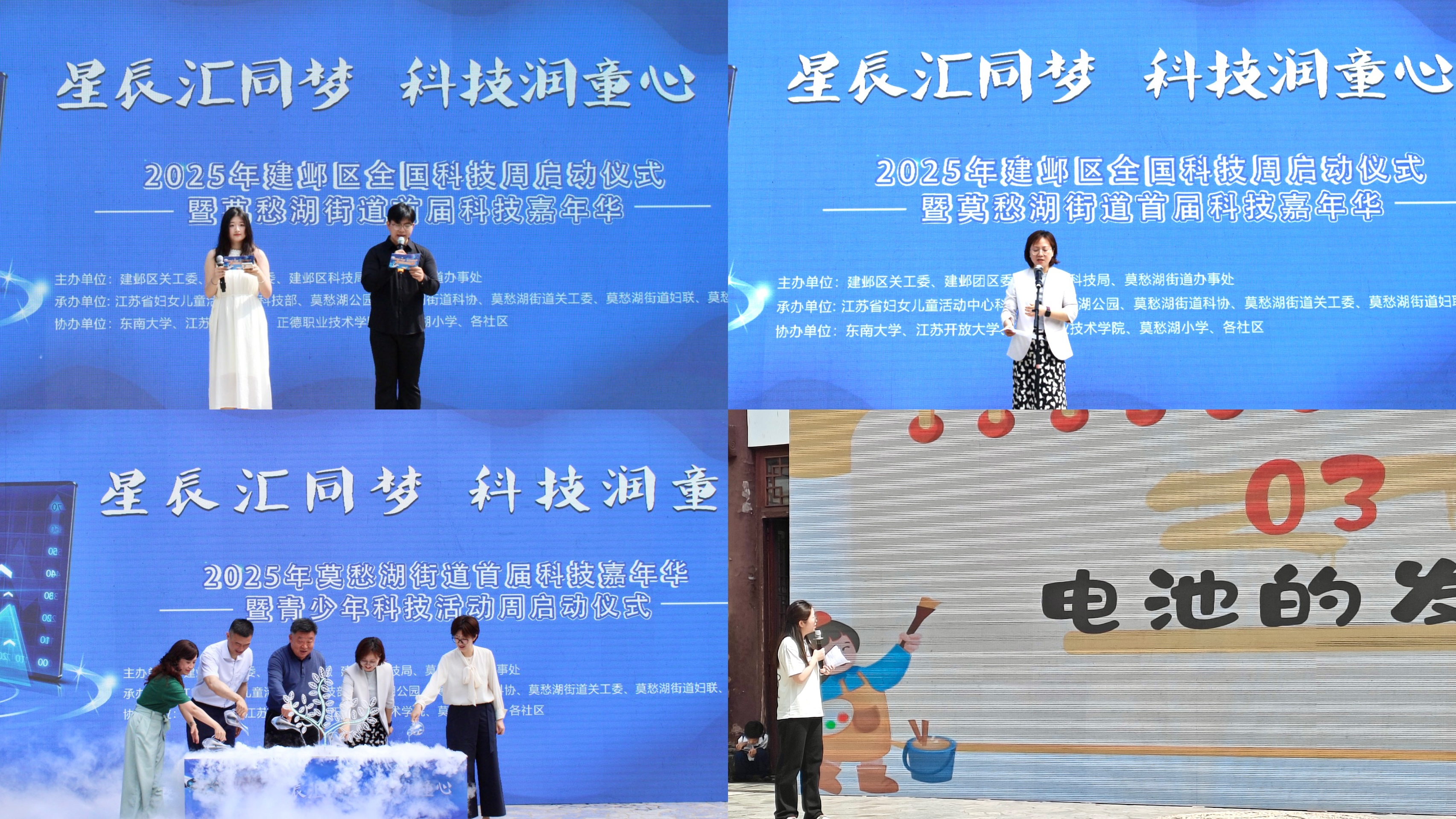 伴着晨曦,志愿者们整装集结于莫愁湖公园,迅速投入会场布置、嘉宾接待、物资搬运等前期筹备工作。他们分工明确、配合默契,短时间内完成了场地布设、签到点搭建、科技周报宣传等任务,为活动顺利开展打下了坚实基础。启动仪式现场,志愿者们承担来宾引导、秩序维护、资料发放等多项任务,始终面带微笑、专业细致,赢得了主办方与嘉宾的一致好评。