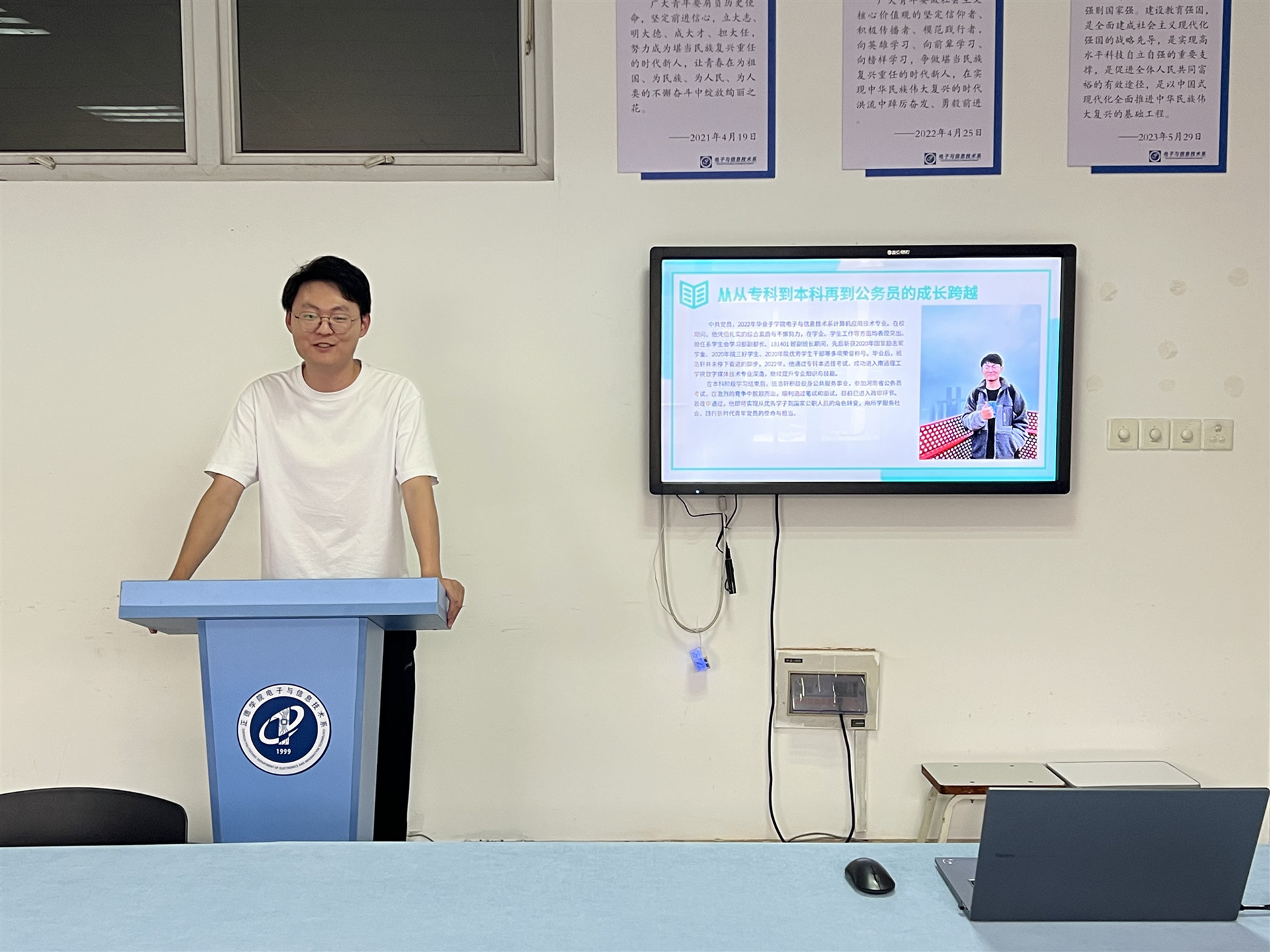 班浩轩,中共党员,2022年毕业于学院电子与信息技术系计算机应用技术专业。在校期间,他凭借扎实的综合素质与不懈努力,在学业、学生工作等方面均表现突出。曾担任系学生会学习部副部长、181401班副班长,并获得2020年“国家励志奖学金”“院三好学生”“院优秀学生干部”等多项荣誉。毕业后,班浩轩并未停下奋进的脚步,2022年,他通过专转本选拔考试,成功考入南通理工学院数字媒体技术专业,继续提升专业知识与技能。在本科阶段学习结束后,班浩轩积极投身公共服务事业,参加河南省公务员考试,在激烈的竞争中脱颖而出,顺利通过笔试和面试,目前已进入政审环节。