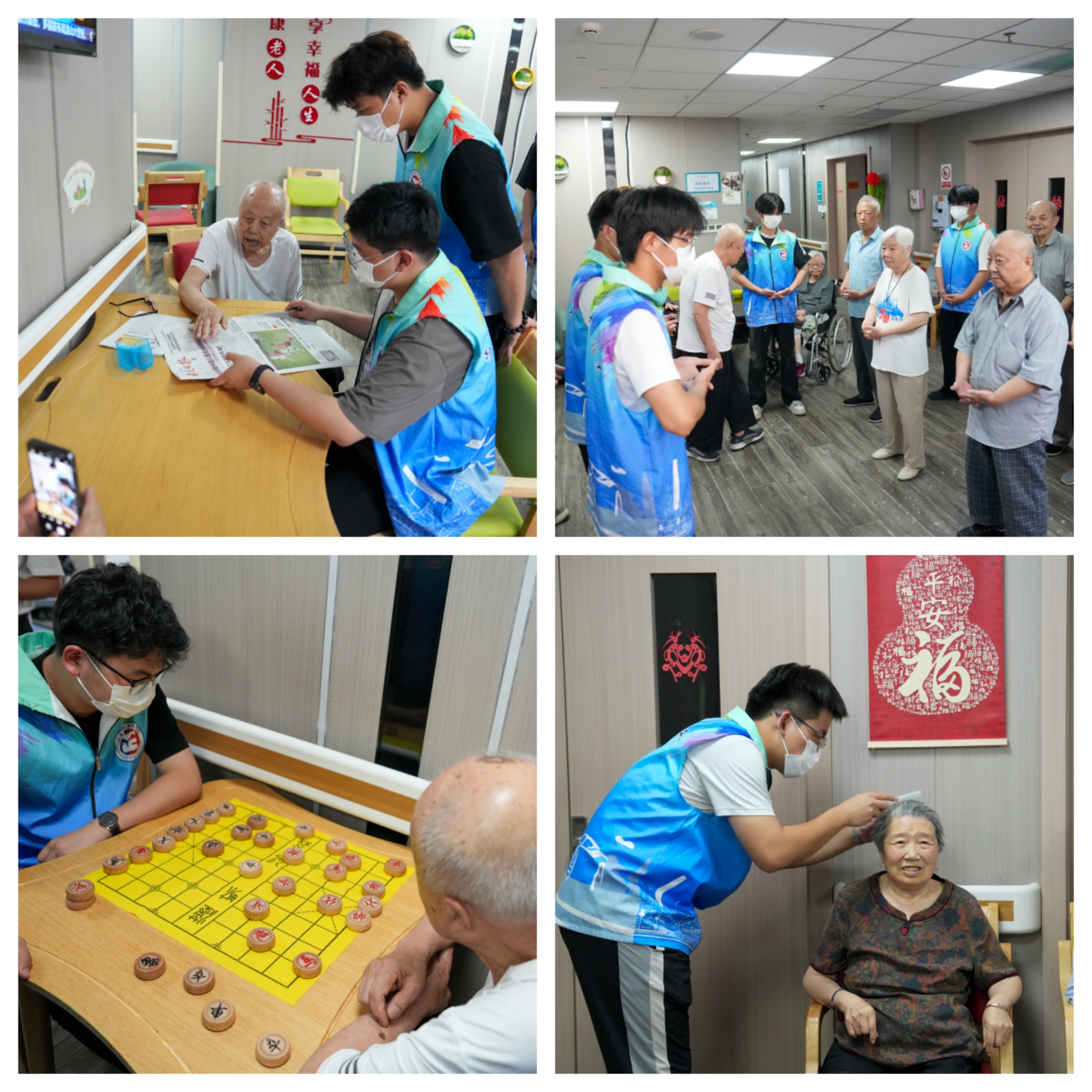 在海安市恒源敬老院里,实践团队与老人围坐交谈,倾听奋斗年代的创业故事与人生感悟,为视力不佳的老人朗读报纸,帮助他们了解当下新闻;针对行动不便的老人,细致地完成梳头、剪指甲等护理工作,用点滴关怀传递温暖。成员们还与老人们进行象棋对弈、台球竞技、猜谜语、击鼓传花等趣味益智活动,敬老院里欢声笑语不断。同时,成员们还带领老人练习八段锦养生操,配合工作人员完成血压测量,以科学方式普及健康知识,提升老年人健康意识。大家纷纷表示“老人们眼中流露出的期待,让我们深刻意识到陪伴的意义。”