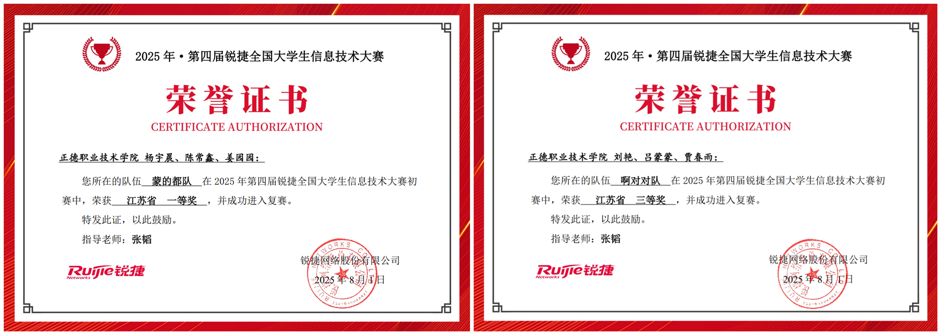 近日,第四届锐捷全国大学生信息技术大赛初赛圆满落幕,户外露出 电子信息与技术系学生今年在本次赛项中获得突破,分别取得一等奖和三等奖各一项。