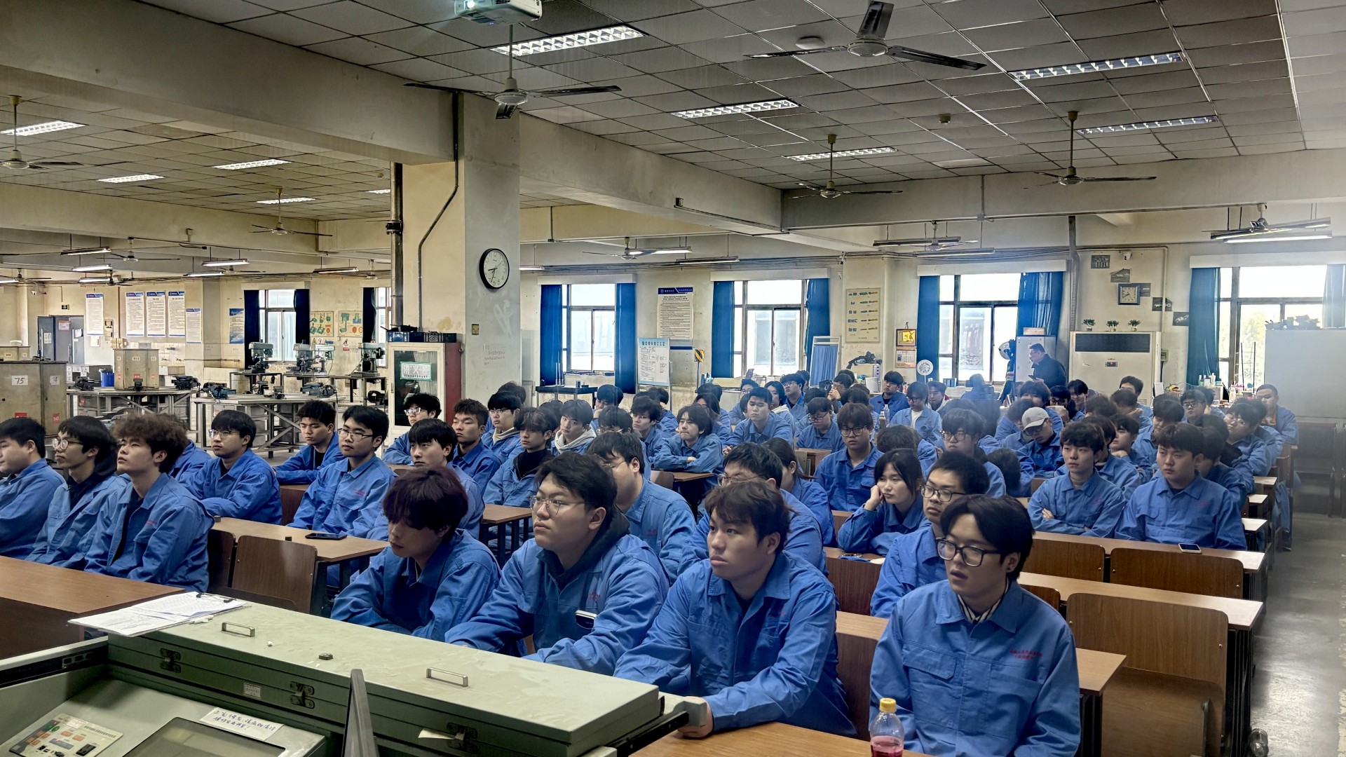南京航空航天大学作为航空领域知名高校,拥有先进的金工实训设备和雄厚的师资力量。实训前,南航实训中心的教师结合民航维修行业标准,为同学们详细讲解了钳工、车工、铣工等核心工种的操作规范、安全须知及技能要点,强调了精准操作和质量把控在航空维修工作中的重要性。随后,学生们根据分组进入实训车间,在教师的指导下开展实操训练。