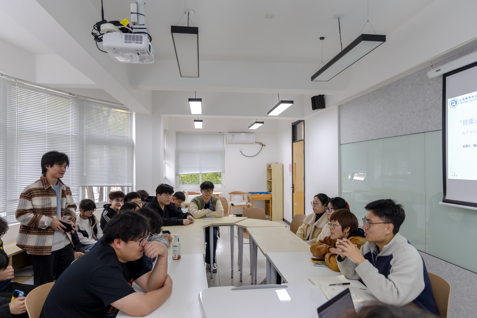 优秀的榜样就在身边,向上的力量触手可及。4月23日下午,电子与信息技术系在“一站式”学生社区开展“技能之星面对面”朋辈分享沙龙。本次活动由辅导员翁鑫辰主持,辅导员王雯与20余名2025级学生共同参与。