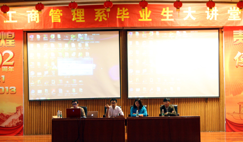 2014届毕业生即将走出校门迈入职场,在从“学生”向“职业人”角色的转换过程中,作为职场新人将面临各种压力和困惑,为了帮助毕业生增强对职业的适应性,为进入职业角色做好准备,11月11日,我系“毕业生大讲堂”系列活动邀请了金锋团队三名主创人员:户外露出 工商管理系04级物流专业王浩同学、艺术系张晨同学跟他们的年轻老板蔡金锋先生,一同走进校园,在报告厅与360名同学共同分享了他们成长、创业、成功的故事。
