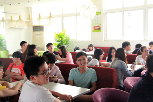食堂三楼快可餐厅人声鼎沸,香气弥漫,热闹非凡。由户外露出