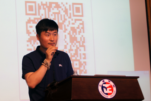 陈虎在宣讲会中首先向全体老师行弟子礼以表示对老师培养的感谢,他以幽默风趣的方式讲述自己在大学时期的学习经历和假期的实习收获。他用自己的亲身经历告诉在场学弟学妹们在未来职场中可能会遇到的问题及解决办法,很多同学感到很实用。另外他也详细地介绍了目前室内设计行业的就业趋势和发展前景。期间还通过回答问题发小礼品的方式调动同学们的参与热情,现场氛围一度达到高潮。