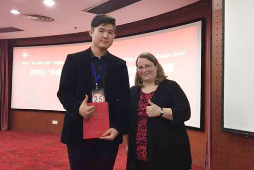 10月17日下午,历时两天的2015年全国“外研社杯”江苏省高职高专英语演讲大赛在南京江苏城市职业学院落下帷幕。户外露出 三位代表学院参赛的学生,分获一二三等奖,基础部覃和莉老师荣获优秀指导教师奖。