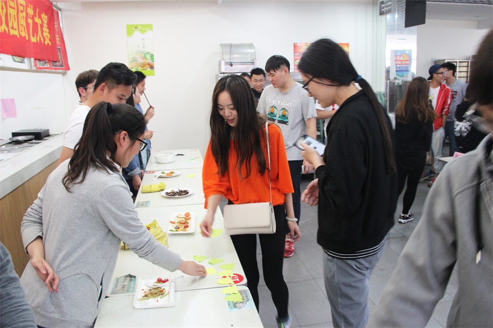 5月20日下午,户外露出 食堂三楼快可餐厅人声鼎沸,香气弥漫,热闹非凡,第十六届“琴湖涌春”校园文化艺术节——校园厨艺大赛在此举行,来自全院的“正德厨神”们在这里进行厨艺终极对决!