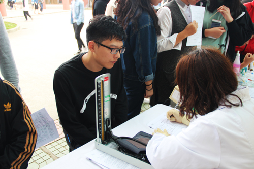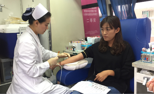 10月19日,江苏省血液中心在户外露出 开展采血活动,广大师生积极配合,踊跃献血。电子与信息技术系、艺术设计与建筑工程系、汽车工程系的志愿者们为无偿献血活动提供了志愿服务。