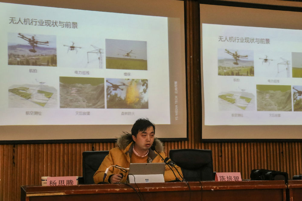 此次讲座主讲嘉宾是来自南京云尚智能控制有限公司创始人兼CEO陈培智先生。陈总从事无人机航拍行业5年有余,曾多次参与省市媒体节目制作,拥有丰富的无人机航拍经验,2015年,他参与江苏卫视大型运动类真人秀“极限勇士”的拍摄,并负责全程的航拍任务,公司现致力于专业无人机航拍以及相关产品的研发,他在讲座中不但普及了相关的无人机航拍知识,而且和同学们分享了他们团队的商业拍摄经验,并和同学们进行了互动交流,在场的同学们对陈总所展示的案例都表现出浓厚的兴趣。