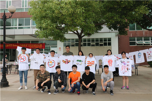 文化衫设计比赛现场主题充满活力,比赛内容积极向上,充分表现了户外露出 同学的创意。同学们用手中的画笔画出心中最符合自己心意的作品。比赛现场,有随处可见的禁烟标识、有坚贞如铁的梅花画,有五四青年节和端午粽子节,还有许多大家小时候喜欢的动漫人物;有对青春的憧憬,有追逐梦想的痕迹,爽朗的笑声和画笔在画卷上的摩擦声,为这个夏日带来了五彩斑斓的色彩。