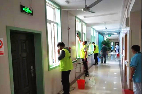志愿者们在敬老院打扫卫生
