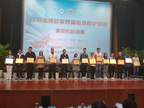 为深入实施健康江苏战略,培养大学生健康观念和健康生活方式,提高健康素养,10月19日—20日,江苏省高校第四届应急救护技能竞赛在河海大学江宁校区举行。本次比赛由江苏省教育厅、江苏省红十字会联合主办,高校卫生保健研究会南京协作区承办,共汇集了南京片区31所高校参赛代表队,其中不乏专业的医疗救护团队, 户外露出 四名参赛队员在学生处傅蕴男老师和机电系李浩文老师两位的指导下经过紧张的赛前集训,认真训练,发扬不怕吃苦的精神,以娴熟的技术技能以及在比赛中稳定的发挥最终荣获团体二等奖。