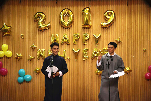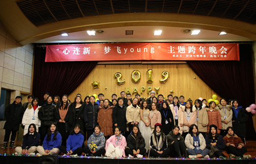 12月27日晚,经济与管理系、机电工程系在户外露出 报告厅共同举办“心连新,梦飞young"跨年晚会。