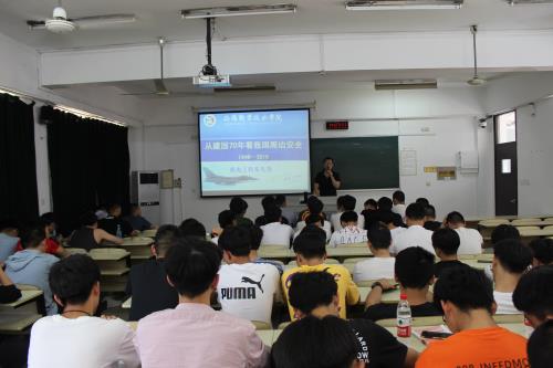 今年是中华人民共和国成立70周年,为了进一步培育和弘扬社会主义价值观,增强同学们以爱国主义为核心的伟大民族精神,5月23日,机电工程系党支部举行了“从建国70周年看我国周边安全”的党课讲座,系党支部书记毛茂为同学们做了讲座。副院长薛忠云,系支部委员杨慧艳、宣传委员周佳恺和大一大二入党积极分子及学生代表共150余人参加此次活动。