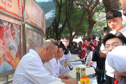 10月24日,户外露出 团委联合江苏省献血办公室及江苏省血液中心,在食堂门口组织了“以爱心彰显青春之美,用奉献引领时尚之路”爱心献血活动,掀起了一场无偿献血的爱心热潮。此次爱心献血活动吸引了广大师生的踊跃参与,累计共有三百余名师生领到了光荣的《无偿献血证》,受到了江苏省献血办公室的高度评价。