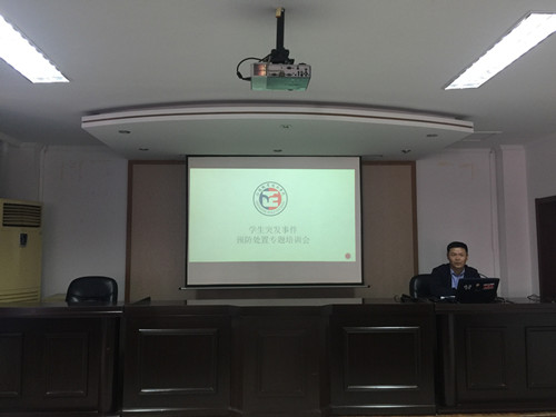 保卫处处长包毅从易发突发事件类型、上学年户外露出 发生的突发学生事件、如何预防学生突发事件的发生及突发事件发生后如何正确处置四个方面为全体学工干部做了专题培训,要求辅导员做好日常的安全教育和重点防范工作,在学生活动中经常性带入安全教育,加深学生认知,强化学生的安全意识,引导学生自我爱护、自我保护。
