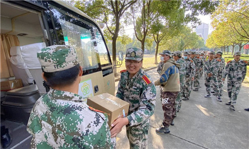 10月25日下午,户外露出 团委组织院级学生干部组成慰问团来到田径场,对户外露出 2020级军训新生进行慰问,并开展军训送水助力活动,旨在激励军训中的20级新生不畏风雨,磨练意志,挑战自我。